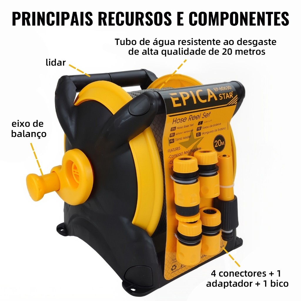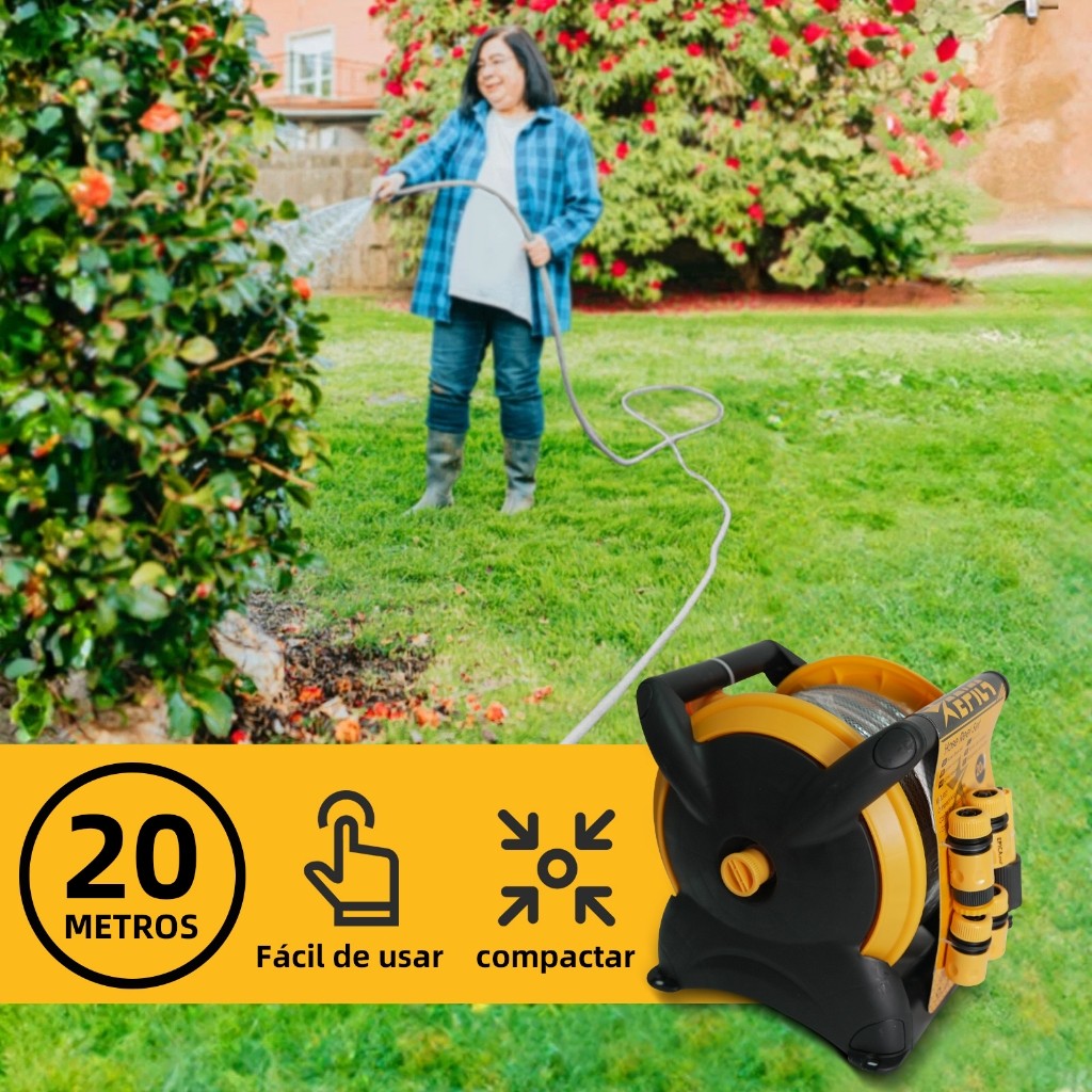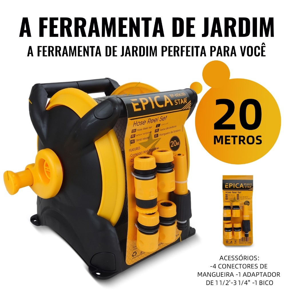 Kit Lavagem Carro e Jardim | Carrinho + Mangueira 20m + Pistola