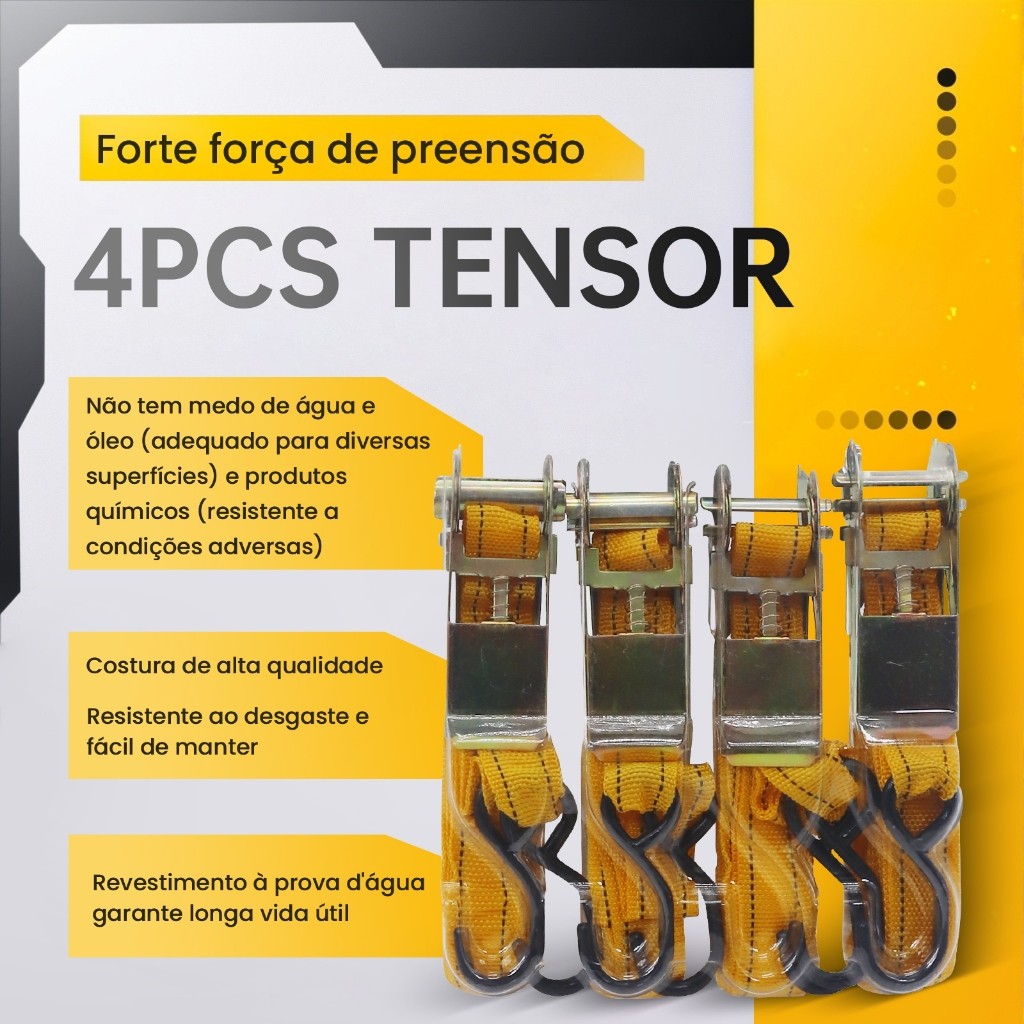 Kit 4 Cintas de Amarração Extra Fortes | Suporte 80kg cada | Tensor para Carga Segura