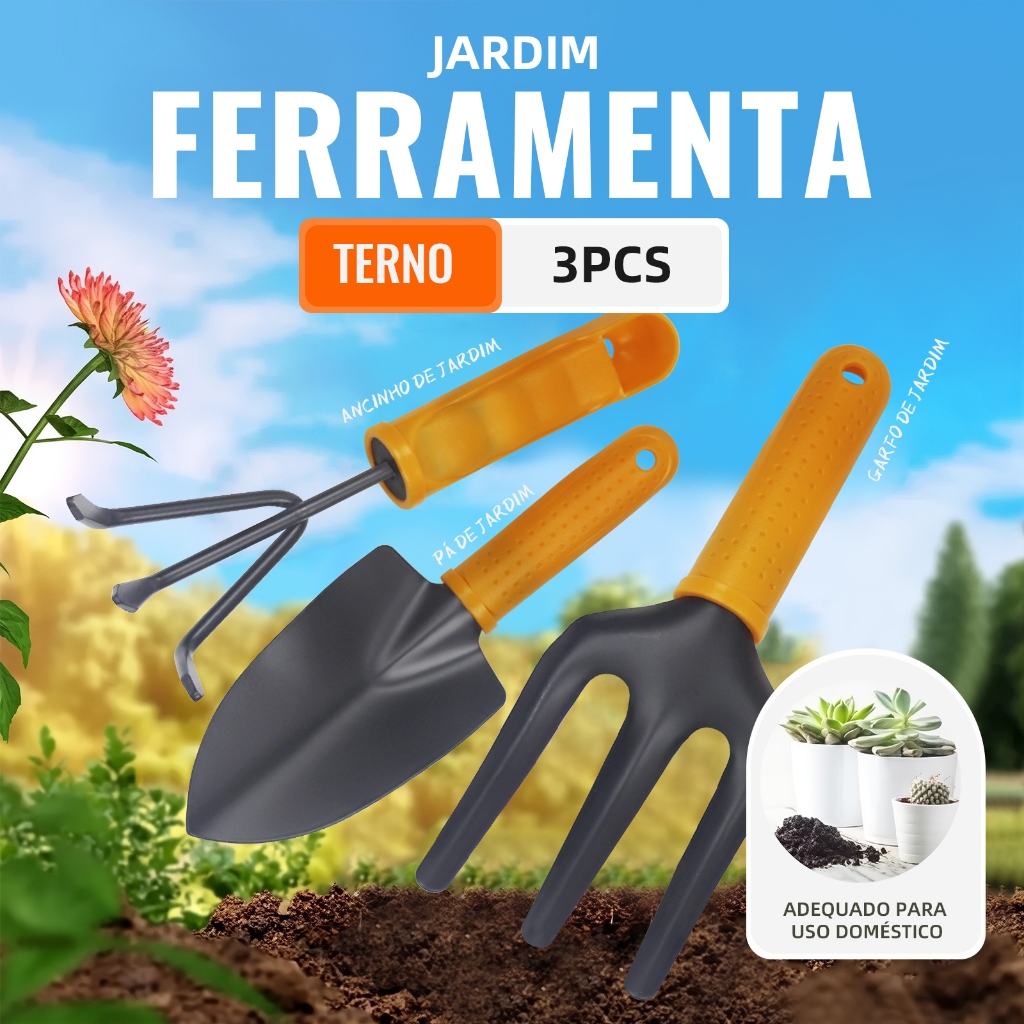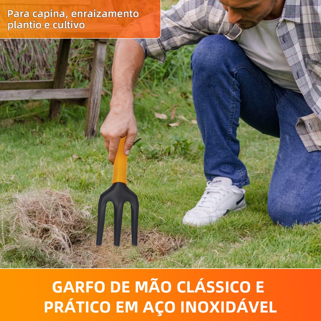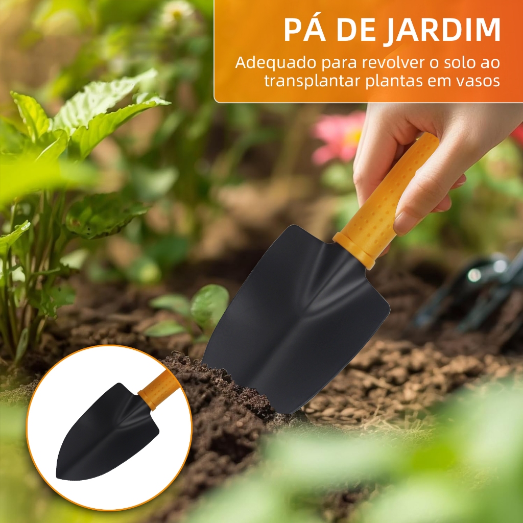 Kit Jardinagem 3 Peças – Garfo, Pazinha Larga e Transplantador Ferramentas Jardinagem Jardim Horta