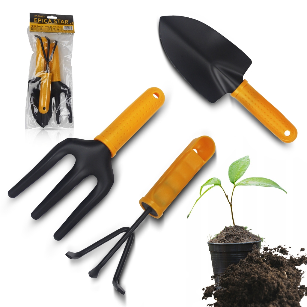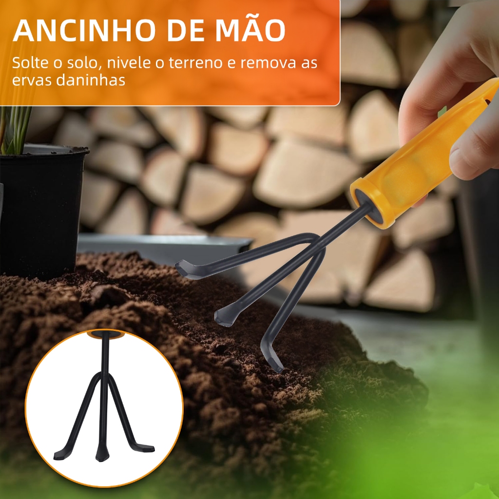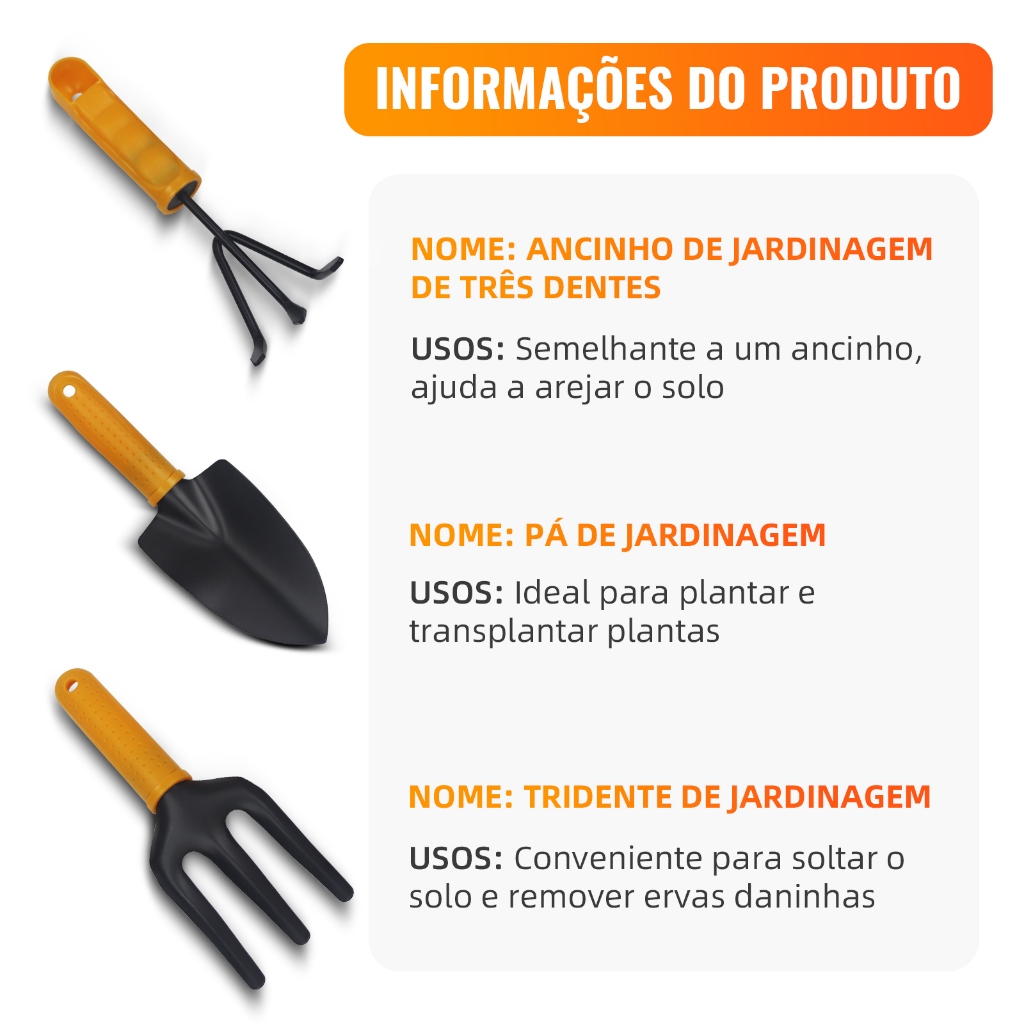 Kit Jardinagem 3 Peças – Garfo, Pazinha Larga e Transplantador Ferramentas Jardinagem Jardim Horta
