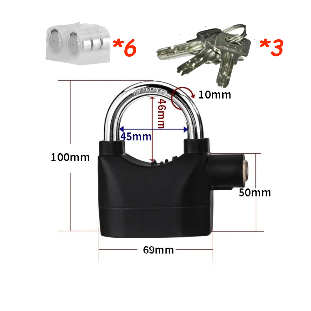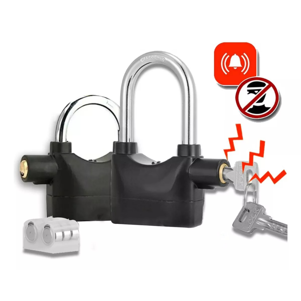 Cadeado Cmo Alarme Grande Prova De Água Antifurto Moto Bicicleta Portão Casa 110dB 6 Baterias Inclusas