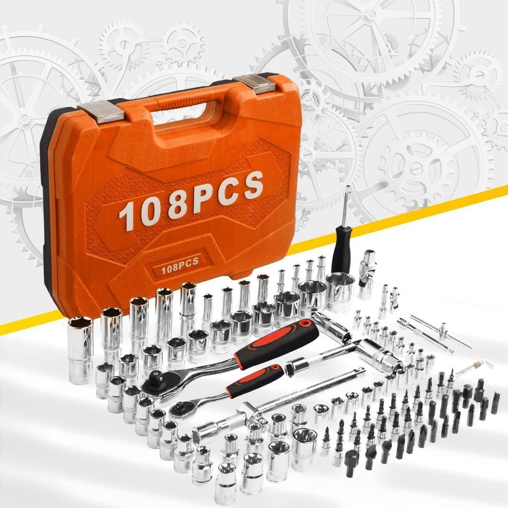 Kit Ferramentas 108 Peças com Caixa - Soquetes, Chaves e Acessórios Multifuncional Profissional
