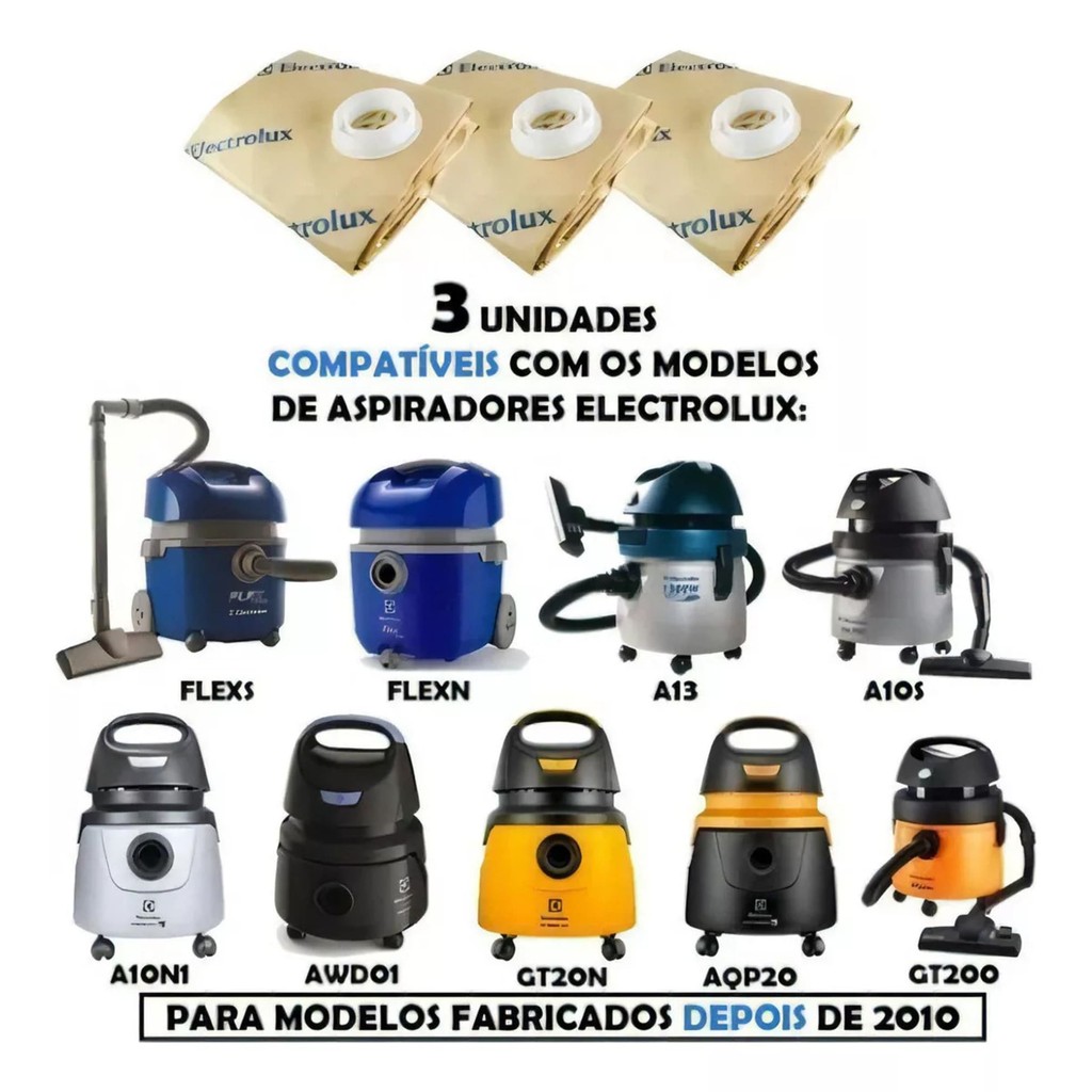 Filtro Saco descartavel Aspirador A10 10L A10S A10T A10 AQP20 Acqua Power Gt 2000 A20810201 3 Sacos.