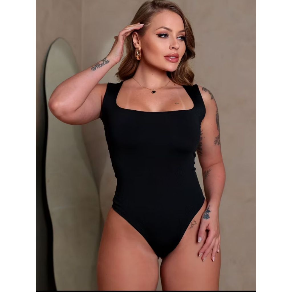 Body Collant Feminino Regata Blusa Decote Quadrado Com Forro Estilo Blogueira