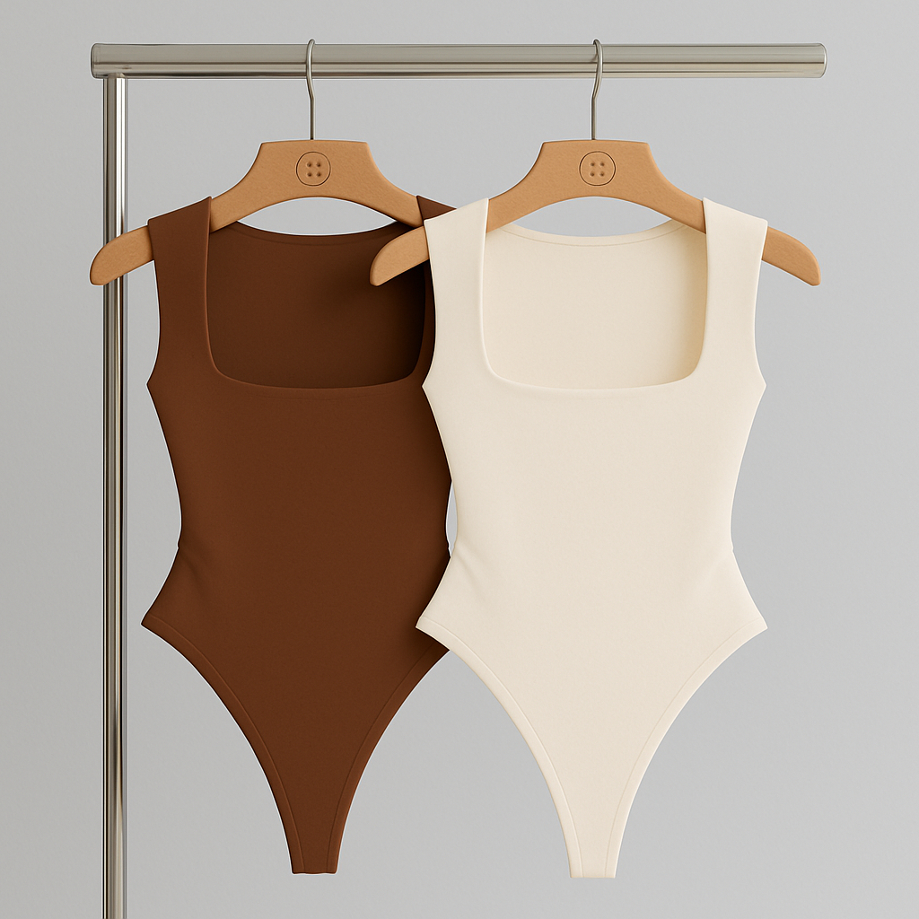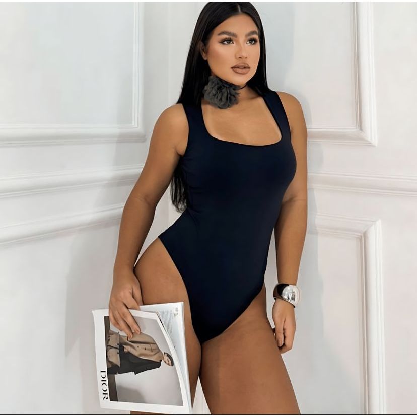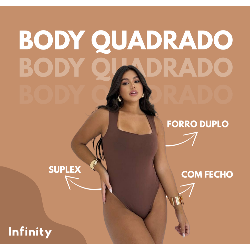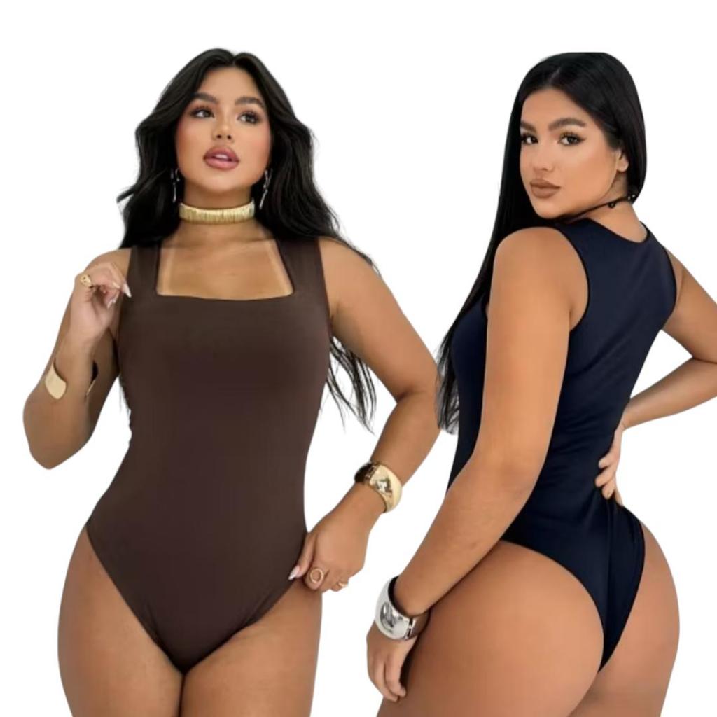 Kit 2 Body Feminino Decote Quadrado com Forro Básico Casual Elegante Estilo Blogueira.