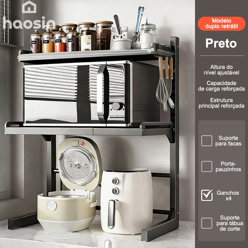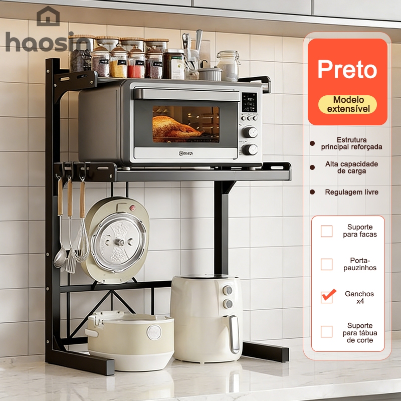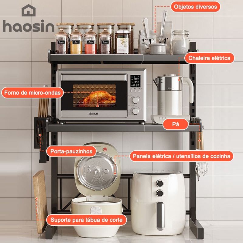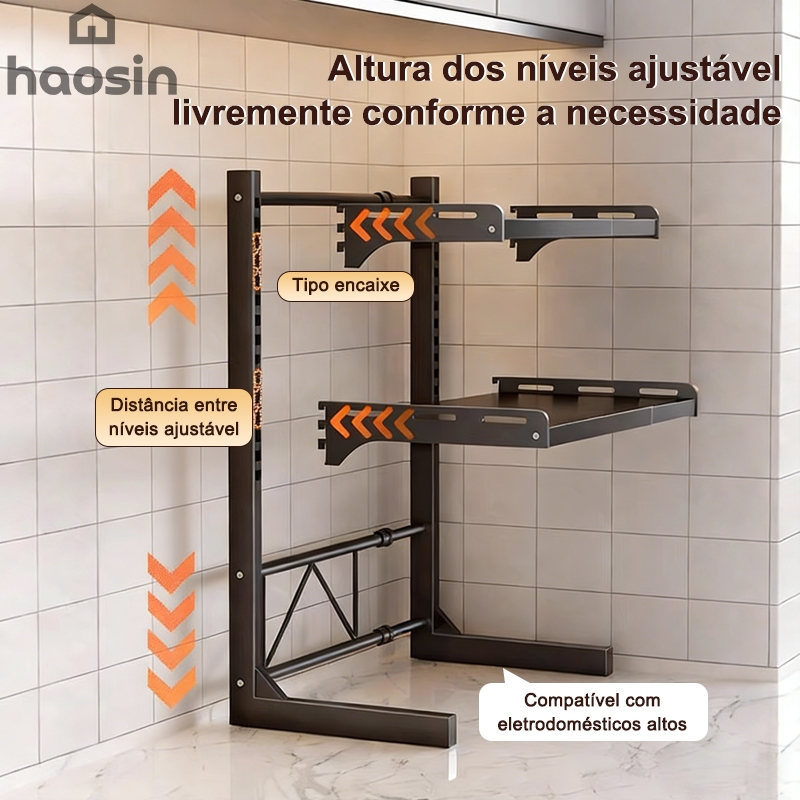 Haosin Suporte para Micro-ondas com Prateleira Dupla Rack Organizador Ajustável de Cozinha, Ganha Espaço