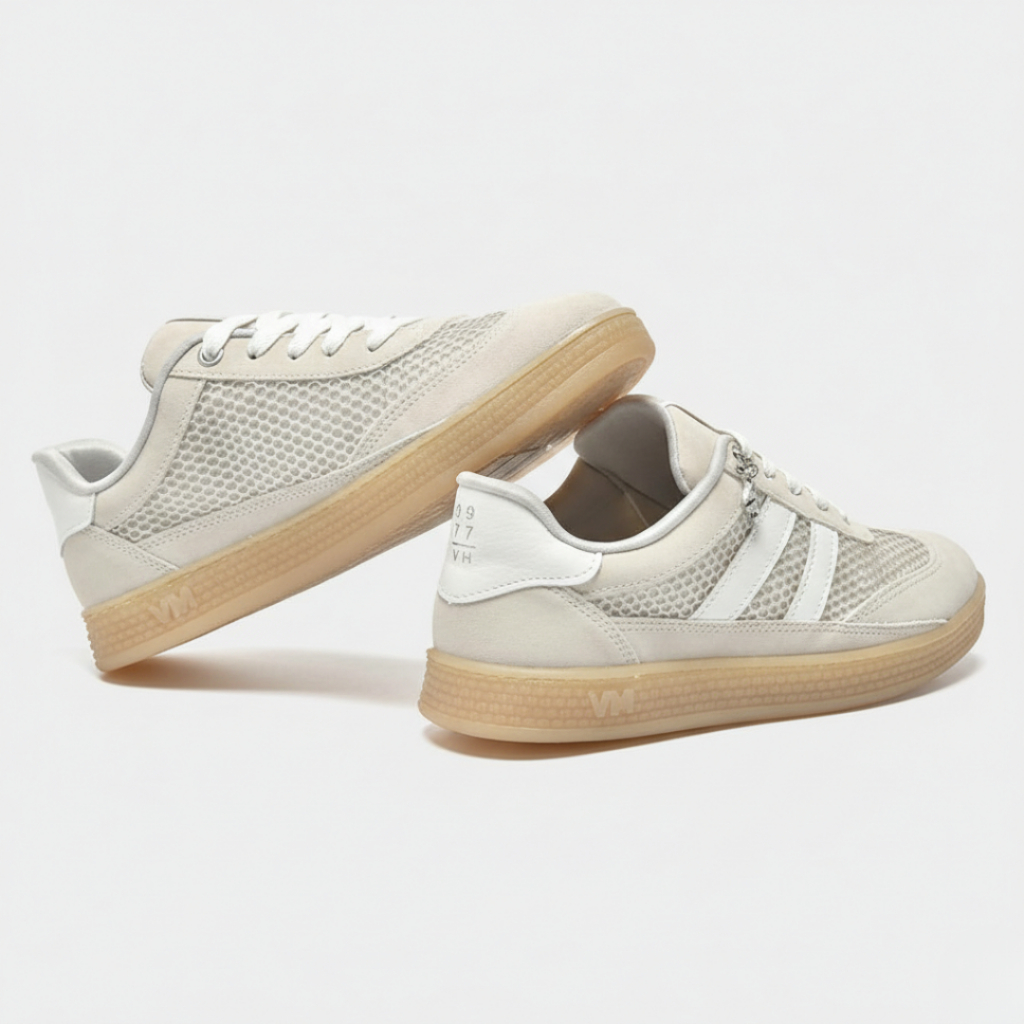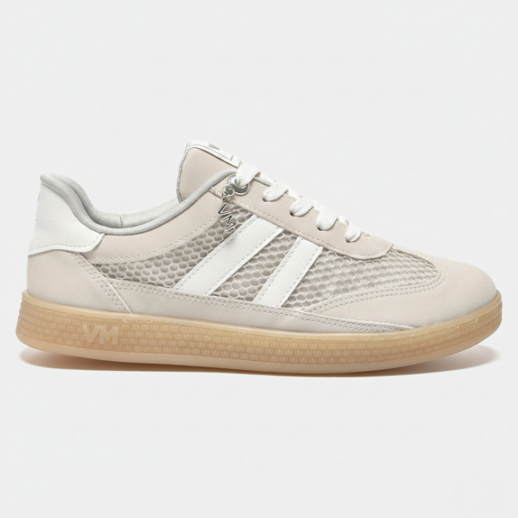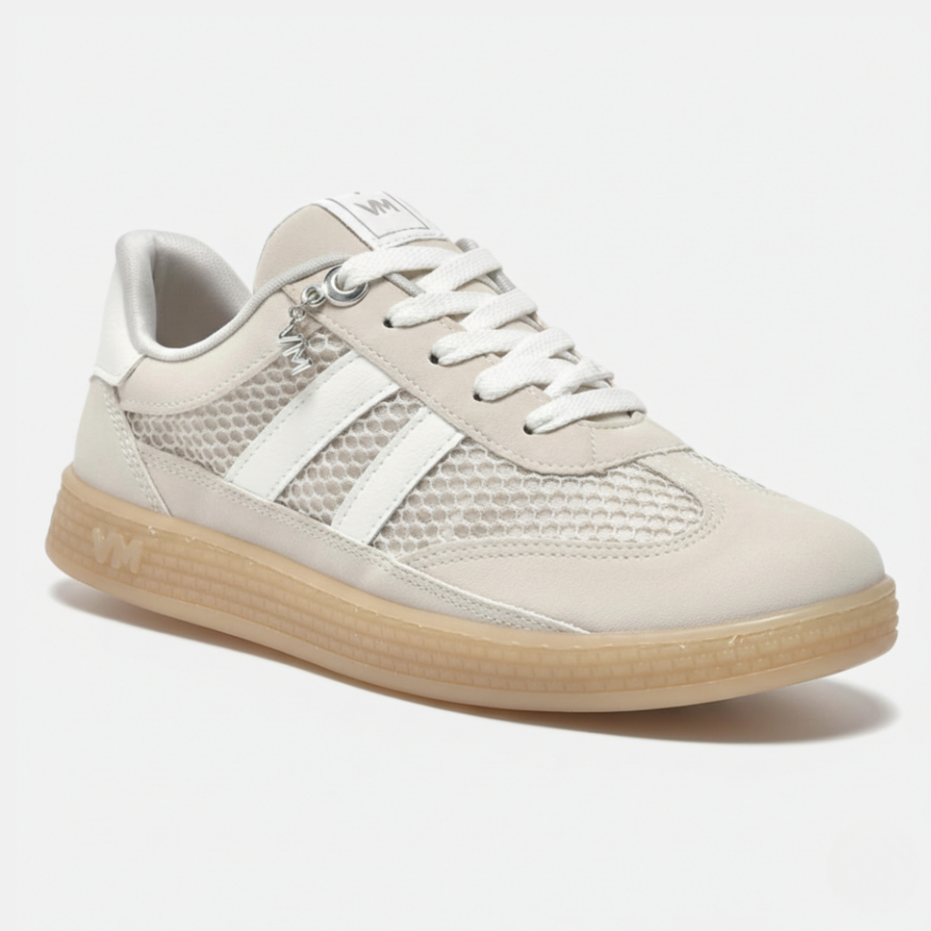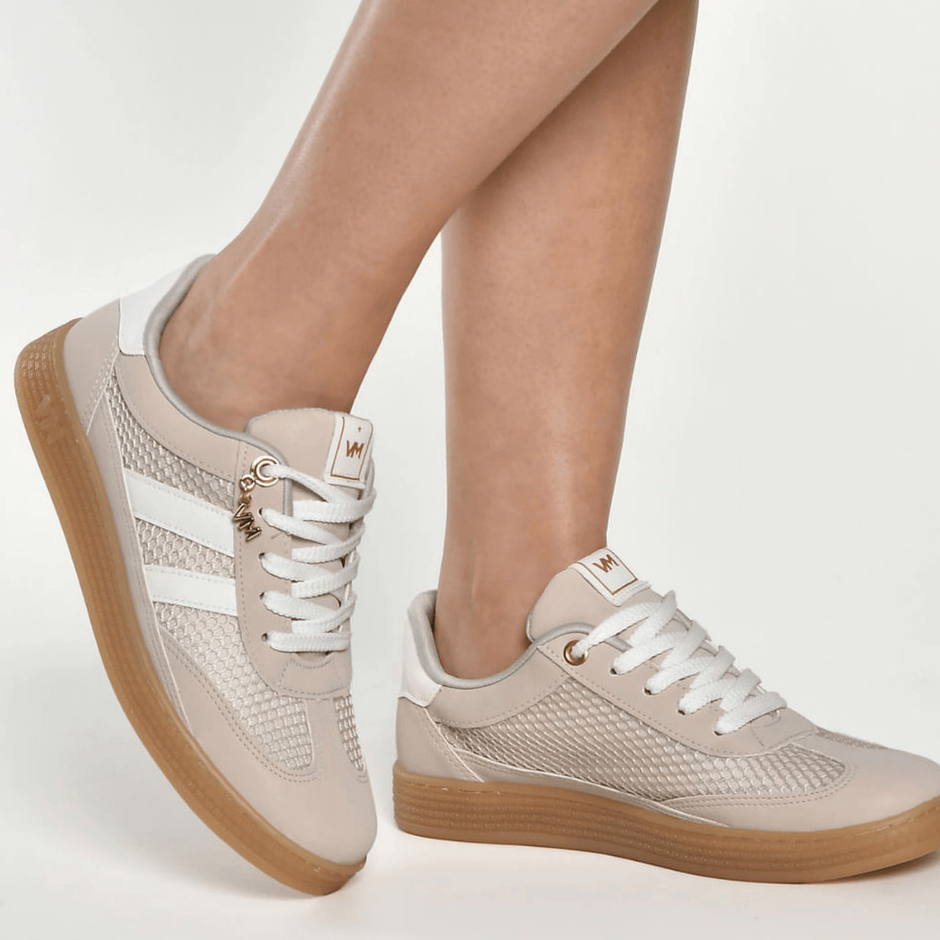 Tênis Via Marte Feminino Casual Colmeia Listras 277-006-02 Nude com Pingente