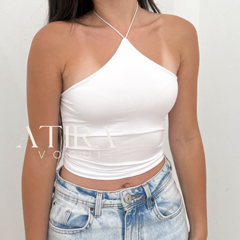 Blusa Feminina Regada Fina Frente Unica em Basica Alça de Amarrar Costas Abertas