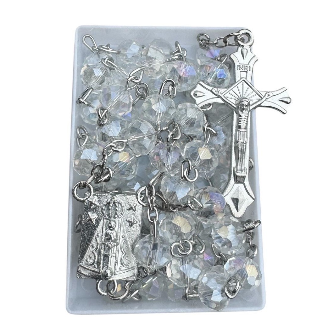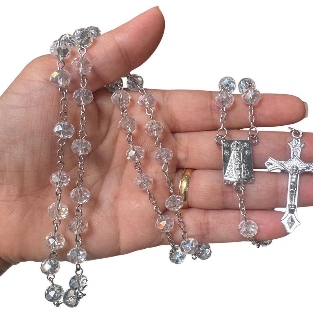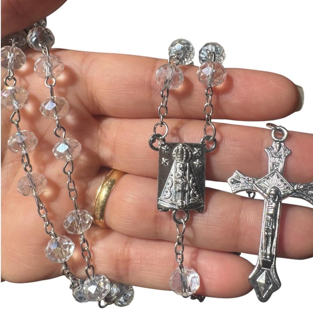 Terço Pedras de Cristal Transparente feito na Corrente de Inox-Comum