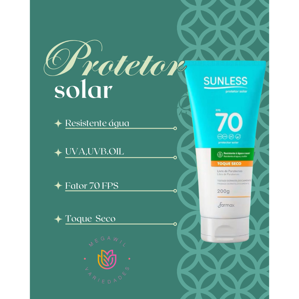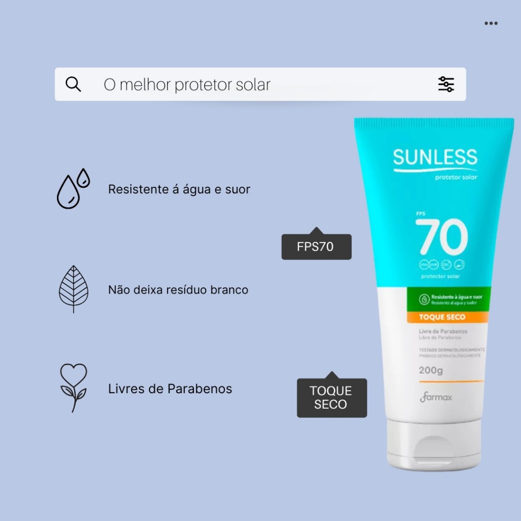Protetor Solar Sunless FPS 70 Toque Seco Não Oleoso 200g