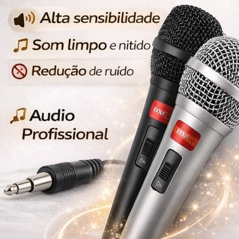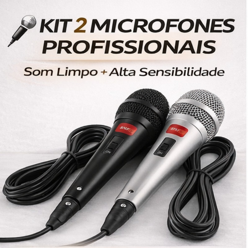 Kit Microfone Profissional Com 2 Unidades Com Fio Dinâmico