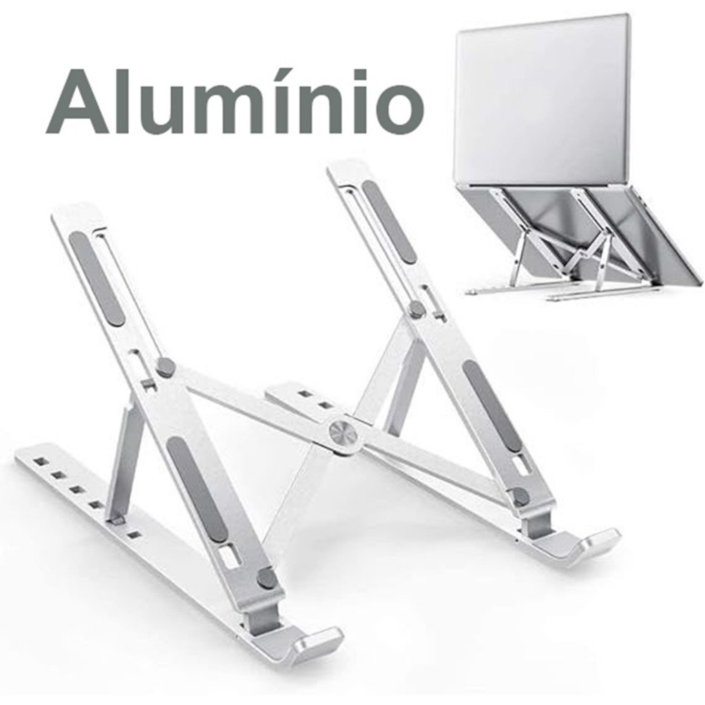 Suporte Para Notebook Base Dobrável de Alumínio Ergonômico Ajustável Fino Portátil Com Estojo