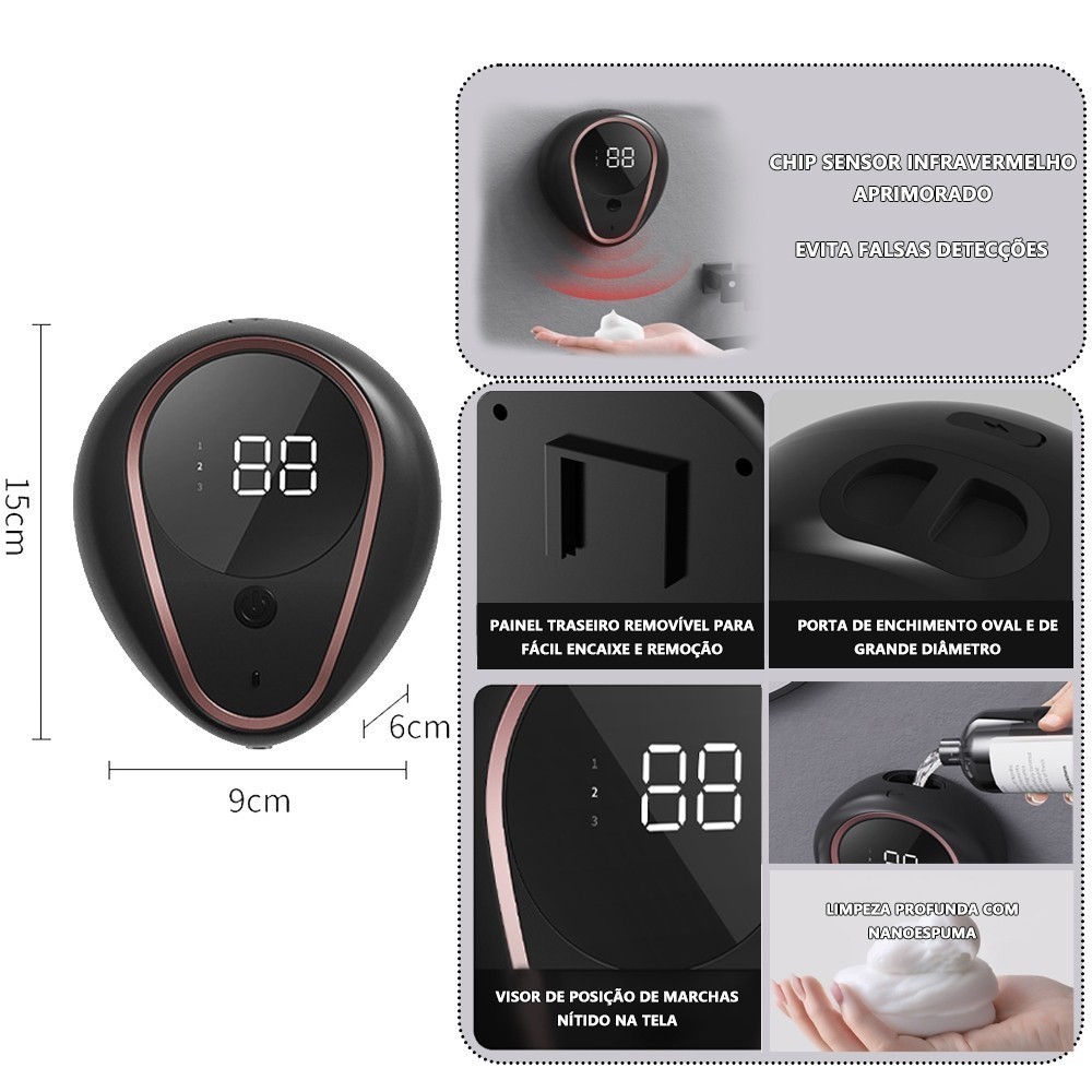 Saboneteira Dispenser Automático Sensor Infravermelho Para Sabonete Líquido Detergente Espuma Banheiro HY5120