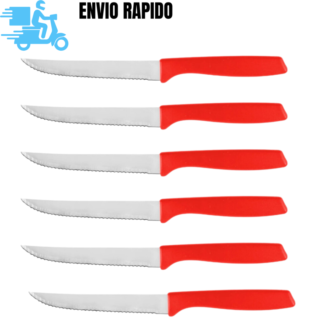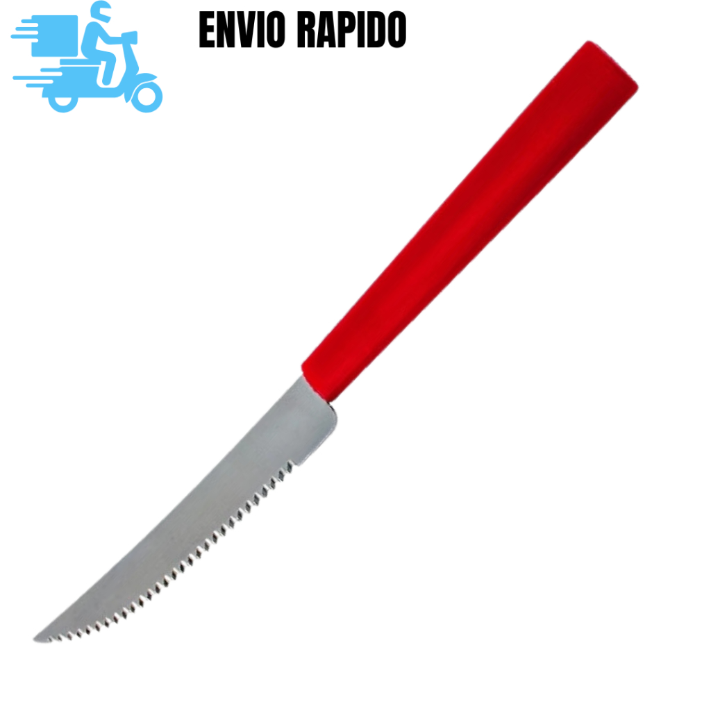 10 Un de Facas de Churrasco Vermelhas 20cm Aço Inox com Cabo Plástico Excelente na Cozinha