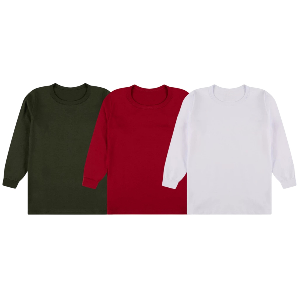 Kit 5 Camisetas Infantil Masculina Manga Comprida Lisas Menino Frio Inverno Meia Estação 2 à 8 Anos