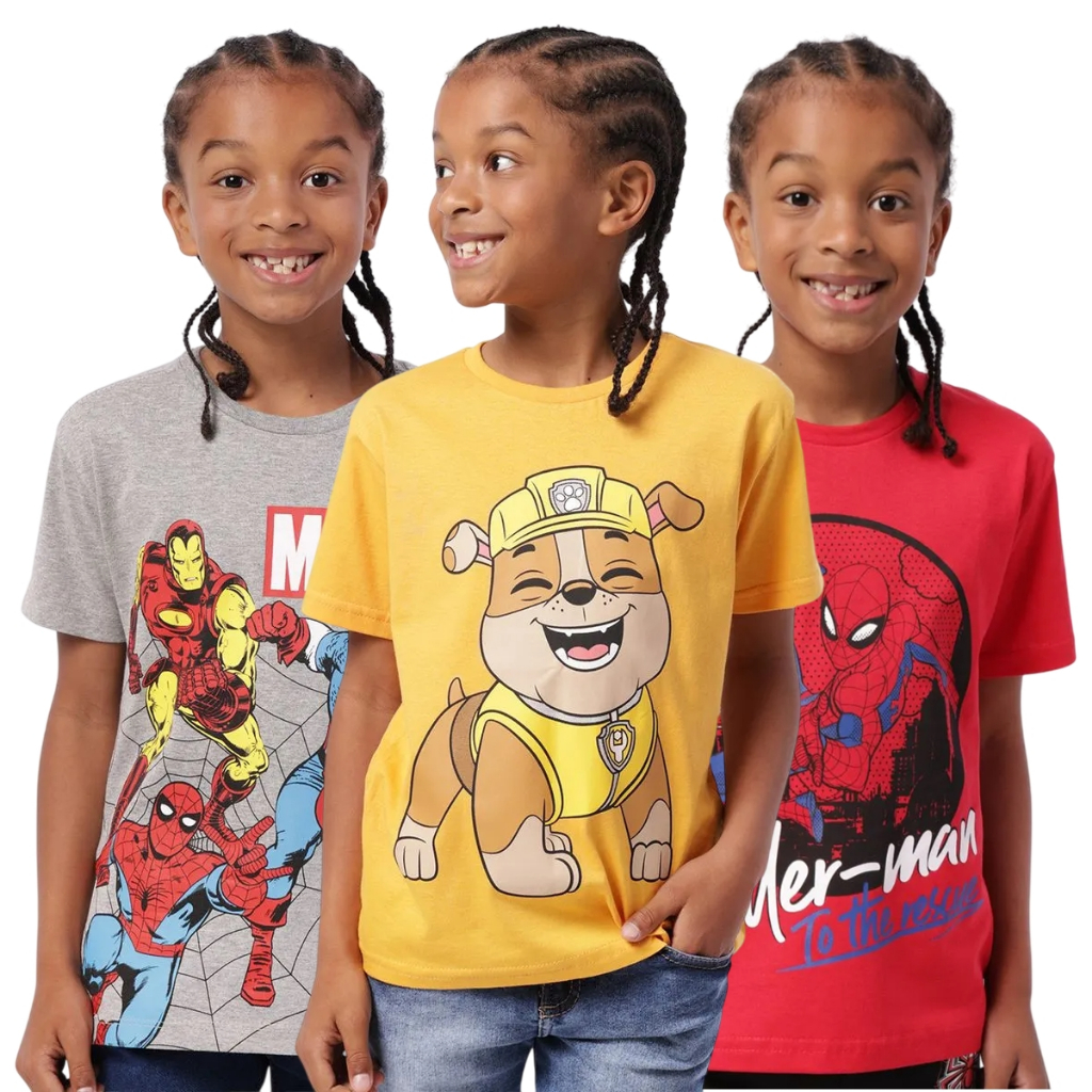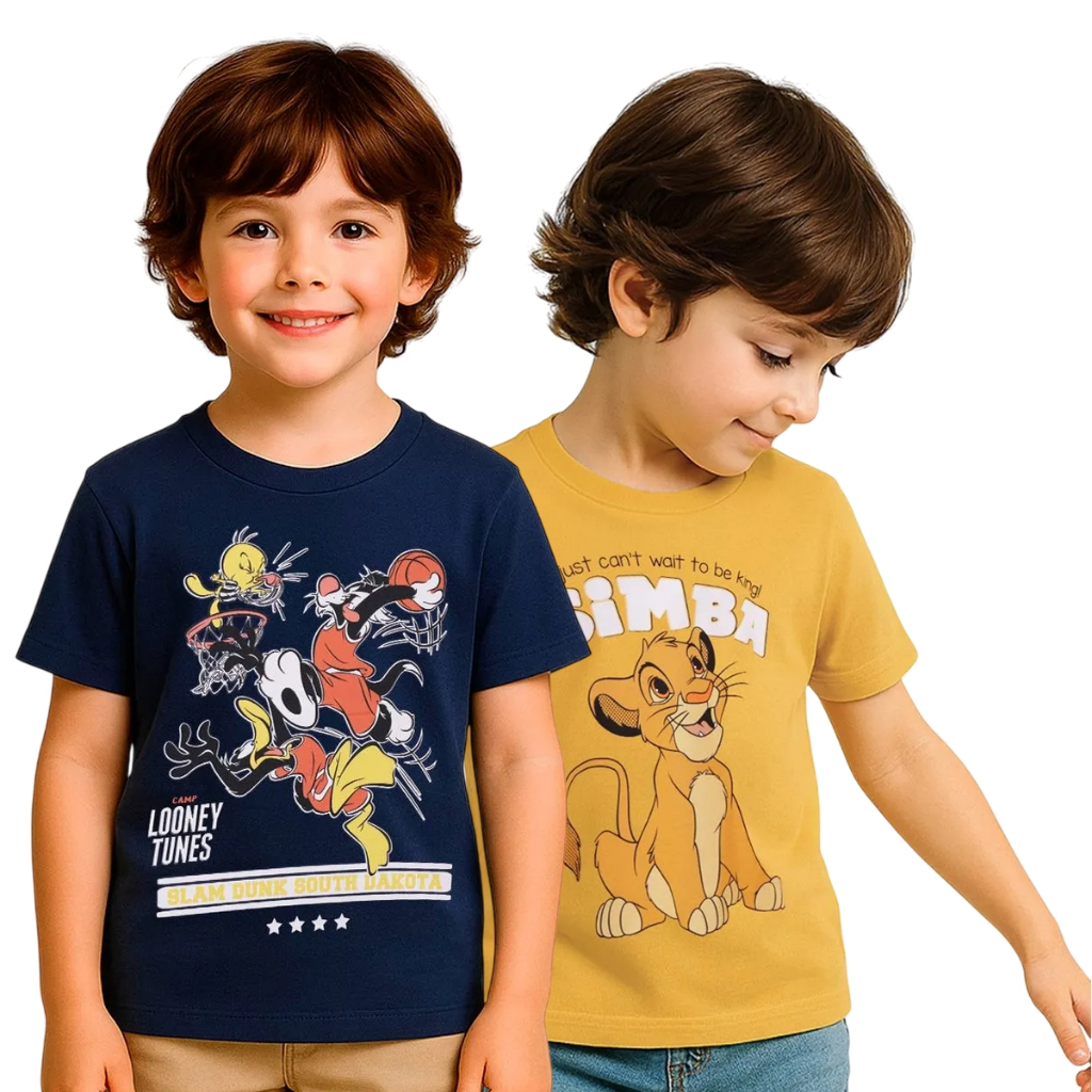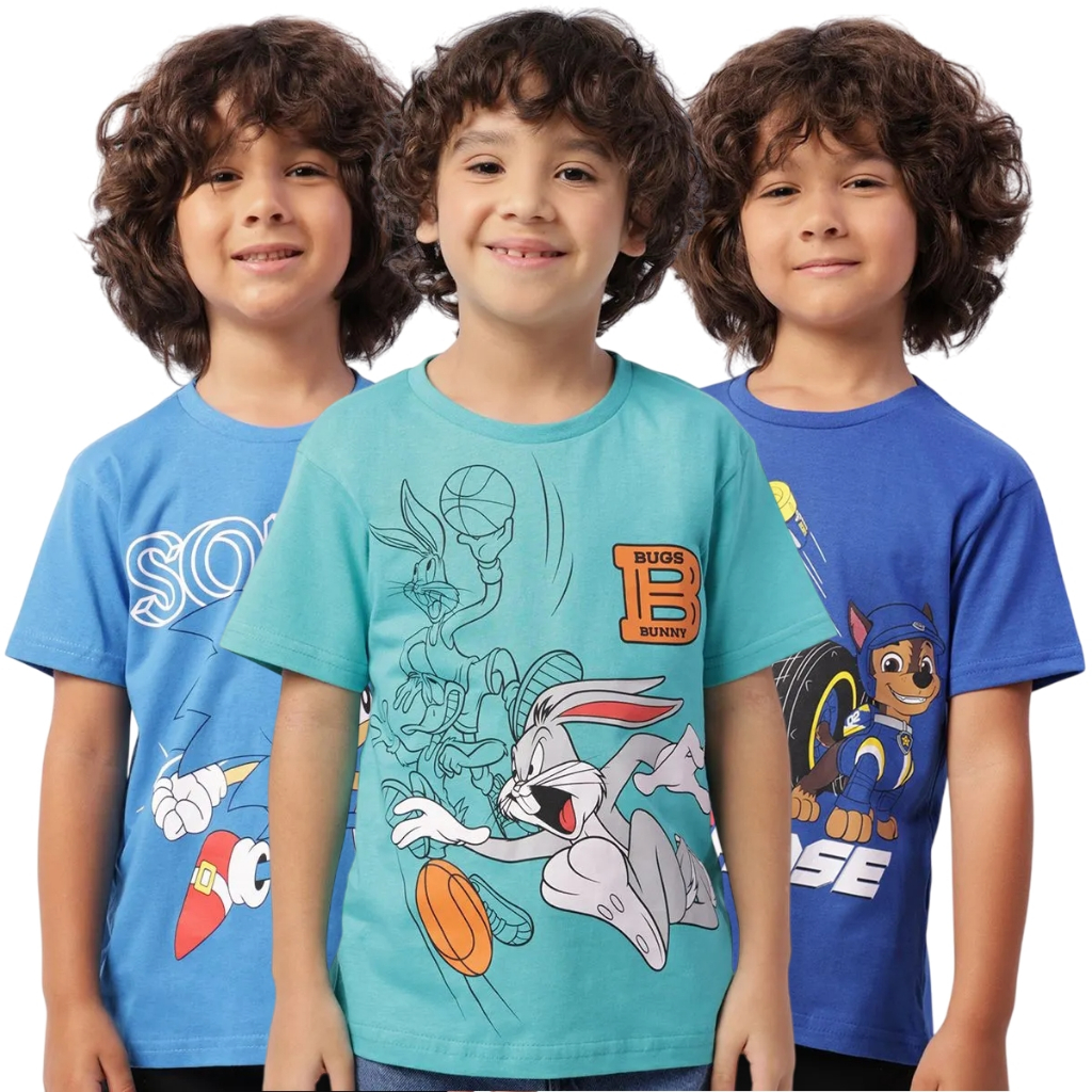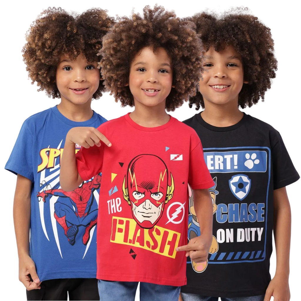 Kit 5 Camisetas Infantil Masculina Manga Curta 100% Algodão Personagens 2 à 8 Anos