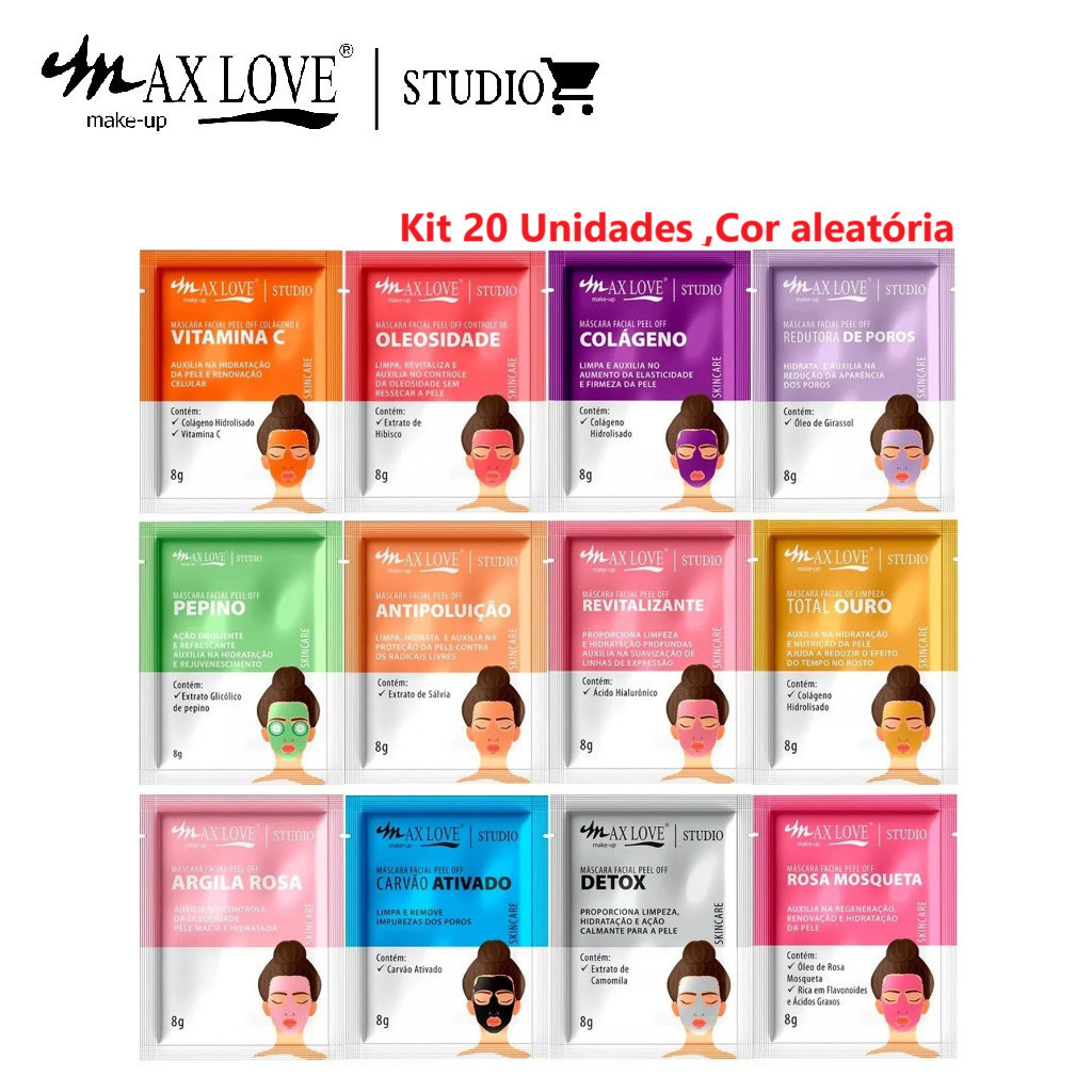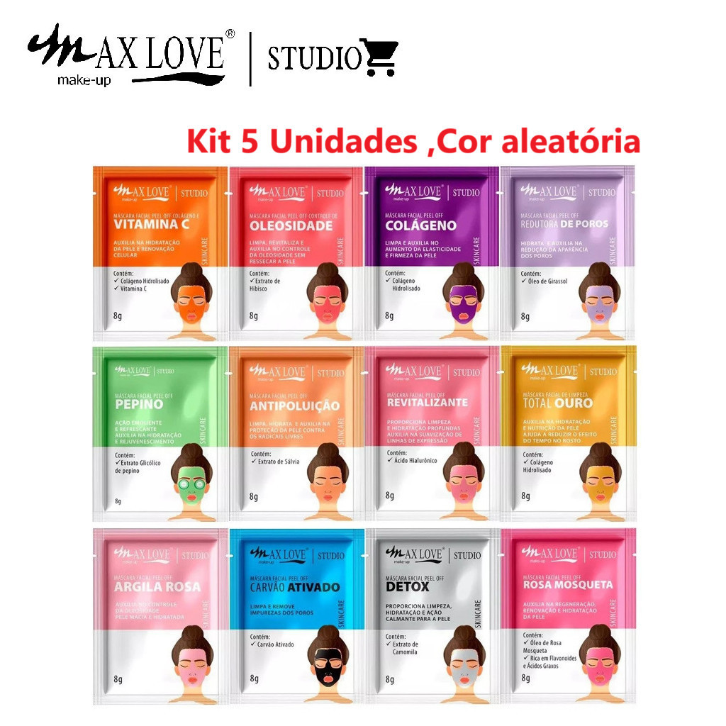 Kit áscara faciai para pele Max Love PEEL OFF MÁSCARA FACIAL PEEL OFF Mix de Modelos 8g