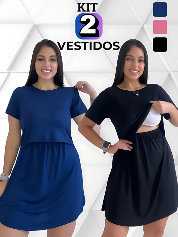 Kit 2 Vestido Amamentação Gestante Pós Parto Saida Maternidade Casual Gravida Amamentar Camisola