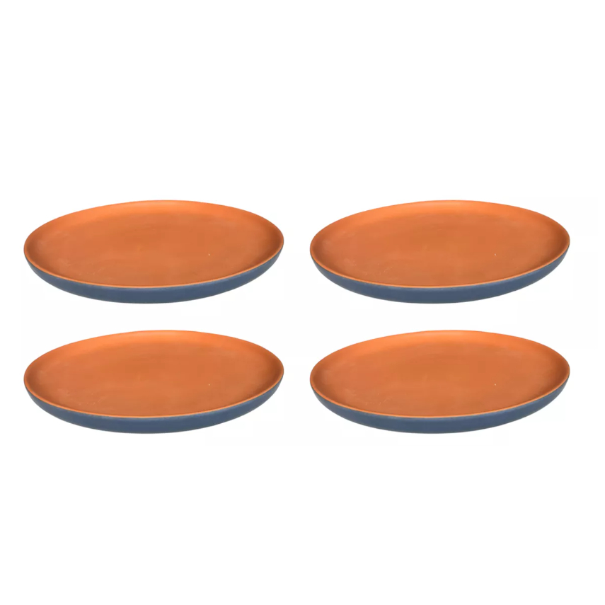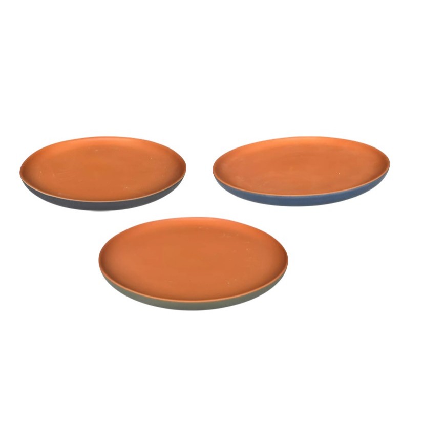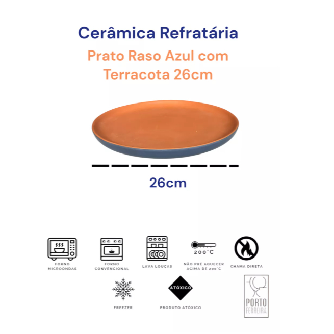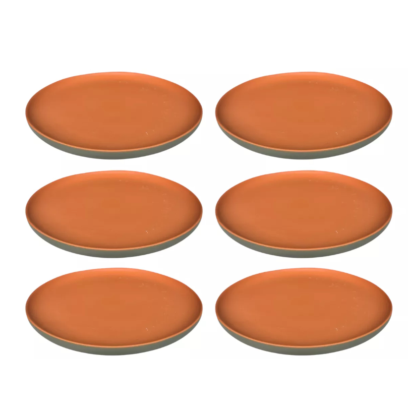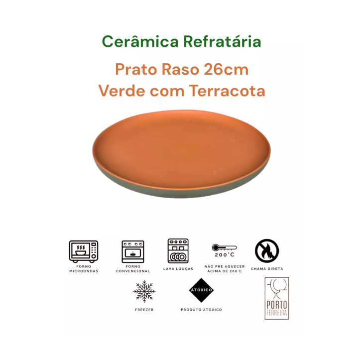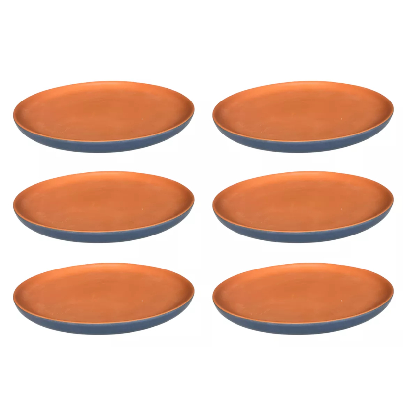 Prato Raso Bicolor Terracota com Verde, Azul e Preto) 4-6 Unidades Cerâmica Refratária 26 cm