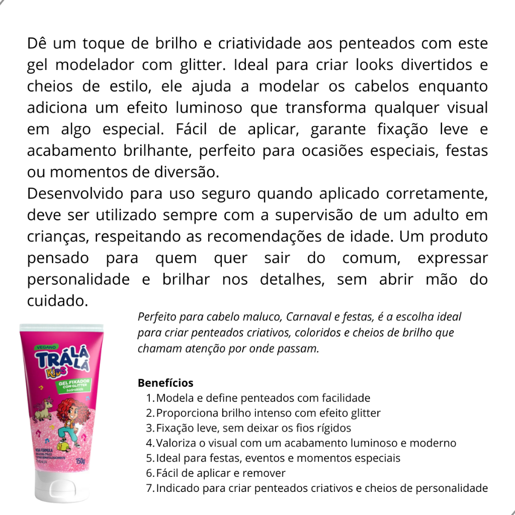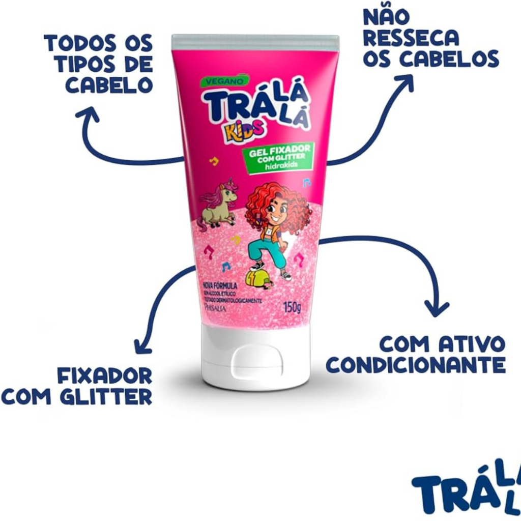 Trá Lá Lá Gel Condicionante Com Glitter Personagem Kids Rosa 150g