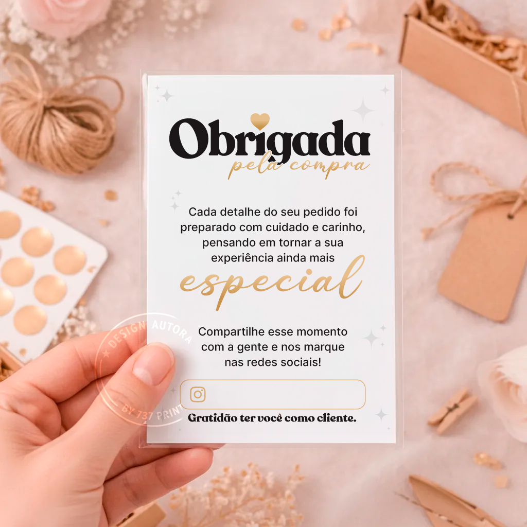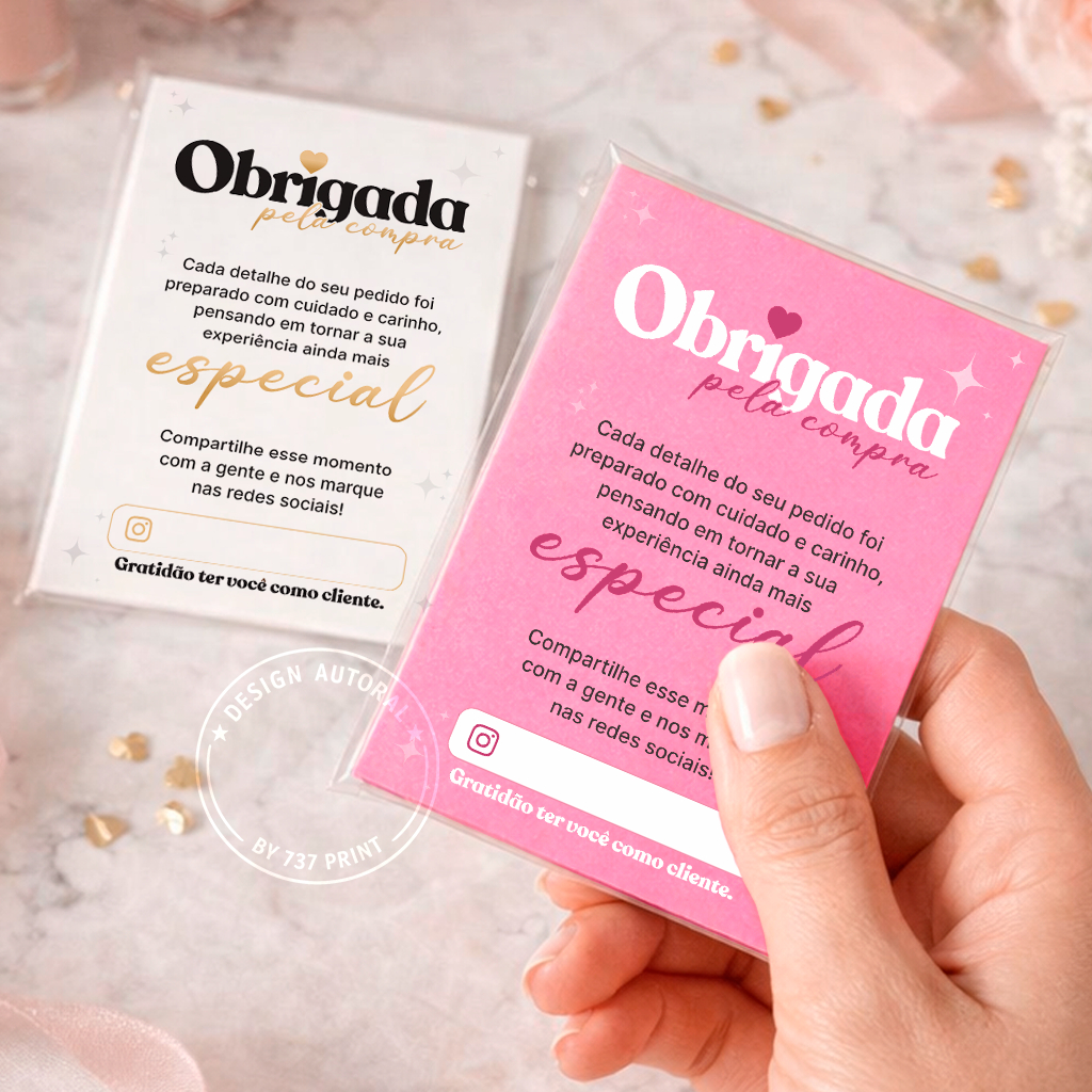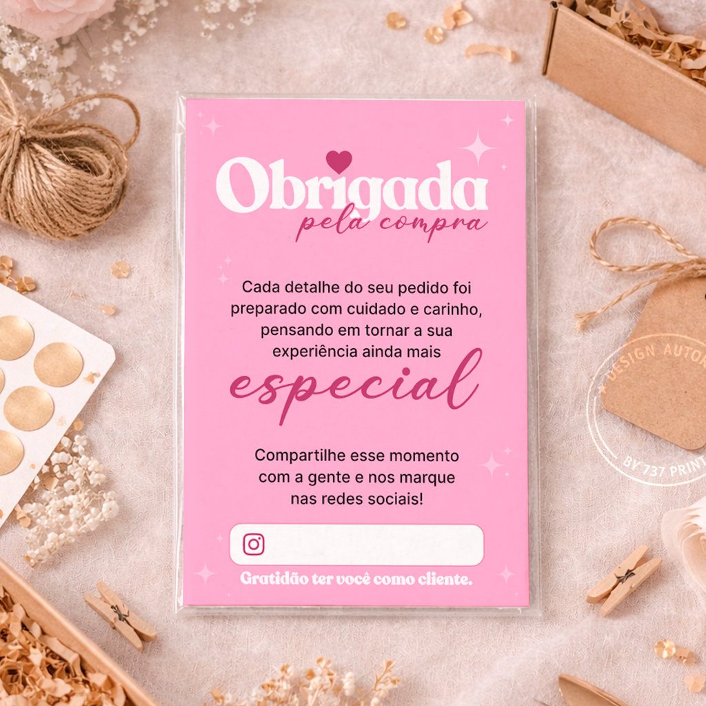 Panfleto folheto de Agradecimento ao cliente Flyer 10x7cm Obrigada pela Compra - Diversas Cores