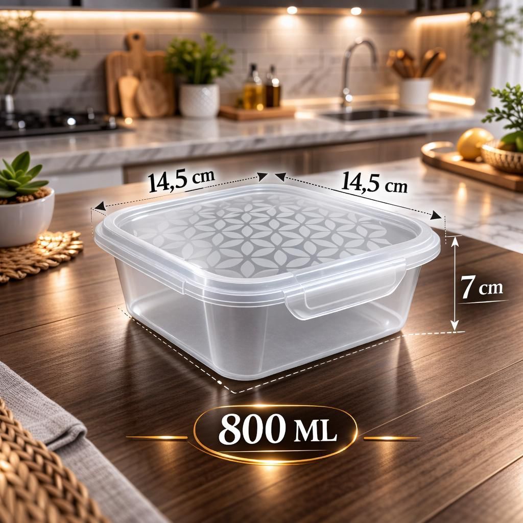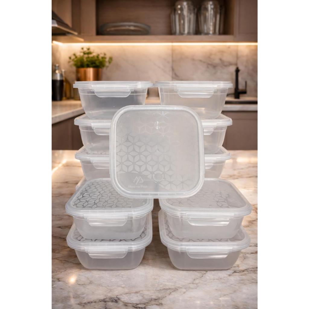 Jogo 10 Potes Quadrado Tampa com Trava 800ml Kit 10 Marmita Fitness Transparente Plástico Livre BPA