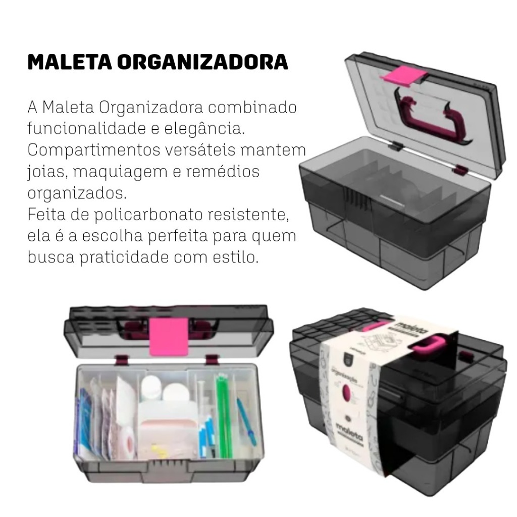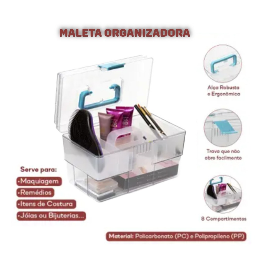Maleta Organizadora Multiuso Maquiagem Esmaltes Joias Costura Medicamentos Odontologia