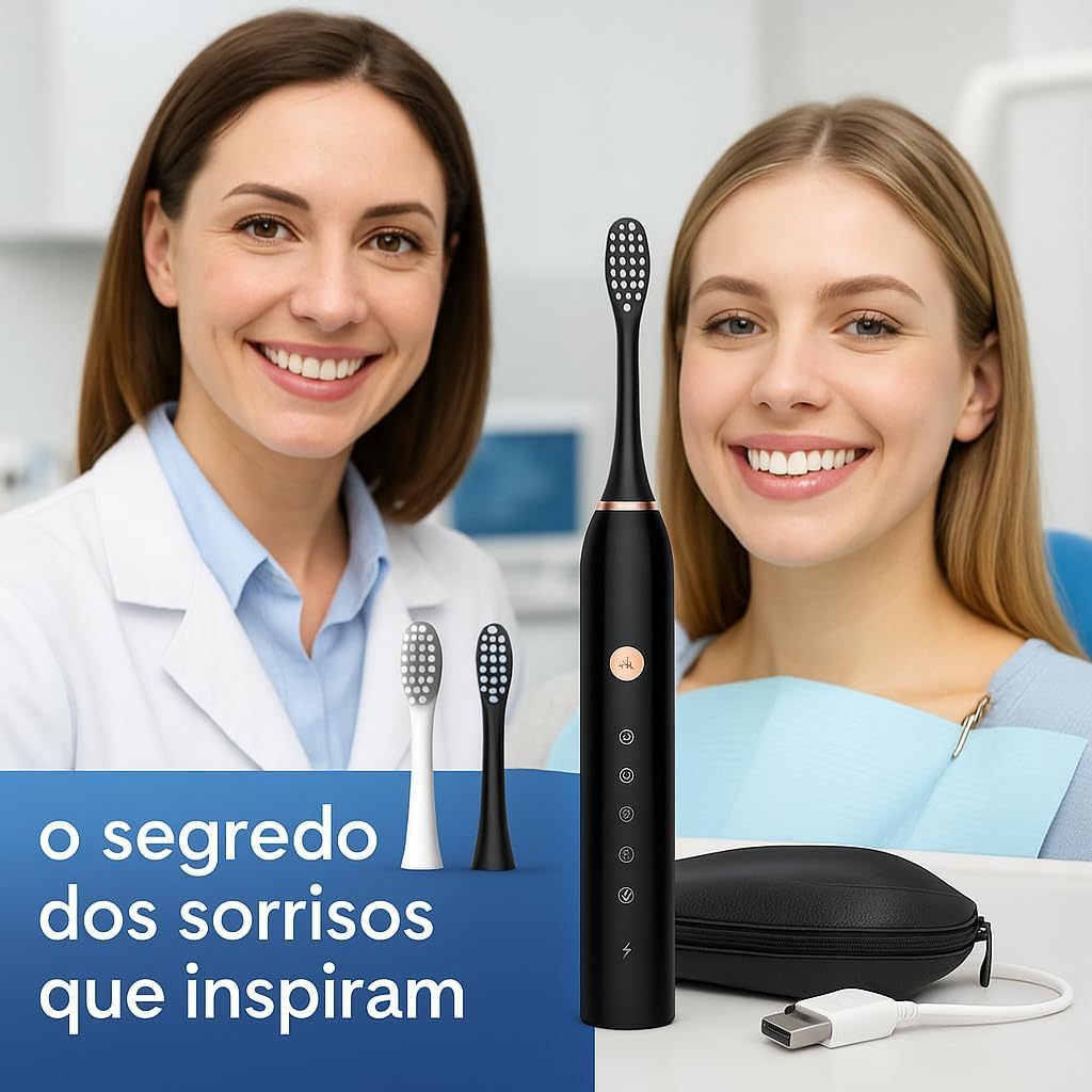 Escova De Dentes Elétrica Recarregável À Prova D'água Sonic IPX7 Com 4 Cabeças Substituível inteligente Ultrassônico
