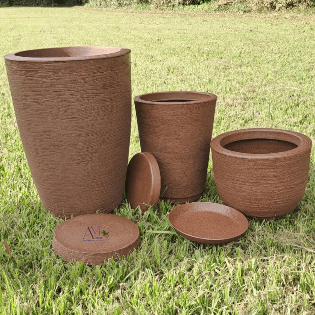 Kit 3 Vasos Grafiato Moderno Luxo Para Plantas, Flores, Sala, Varanda, Jardim Decorações