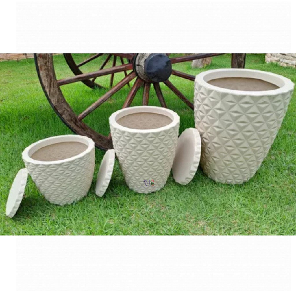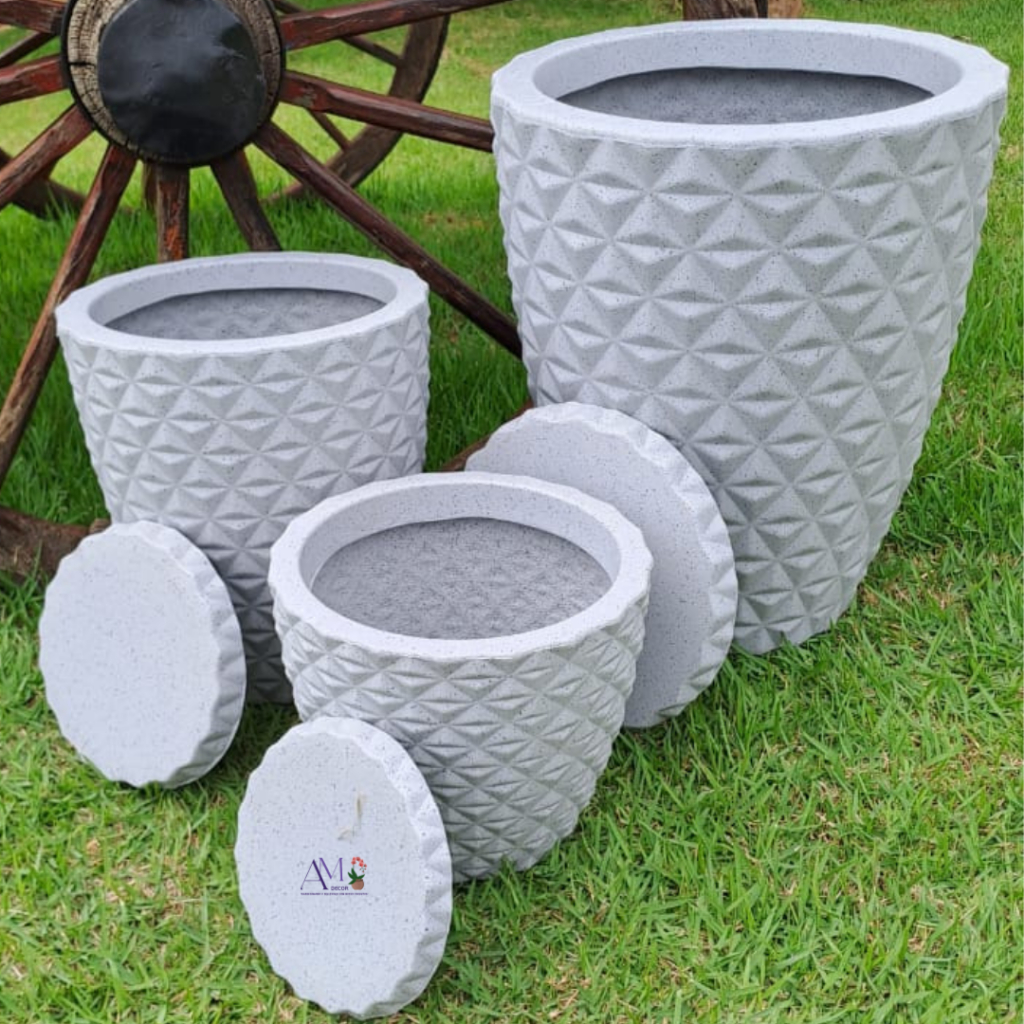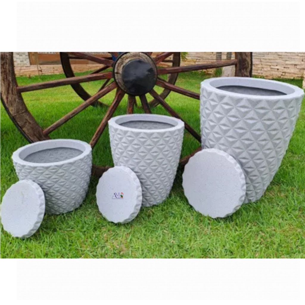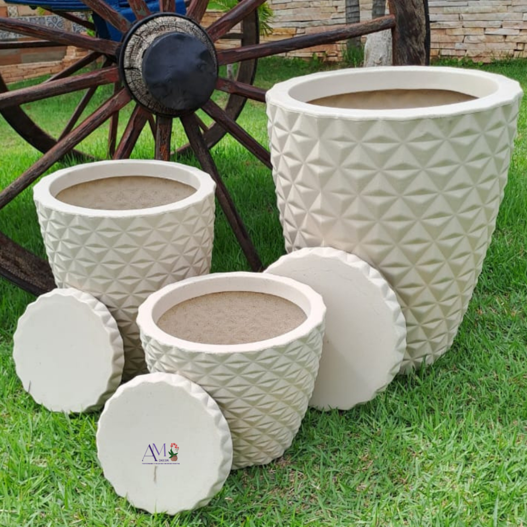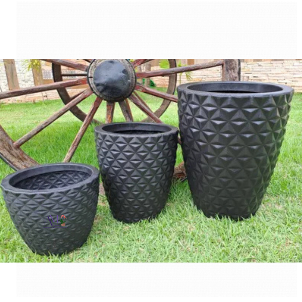 Kit 3 Vasos Premium Polietileno Coluna Diamante 3D Luxo N1, N2 E N3 P/ Planta Casa Decoração Jardim e Interiores C/Prato