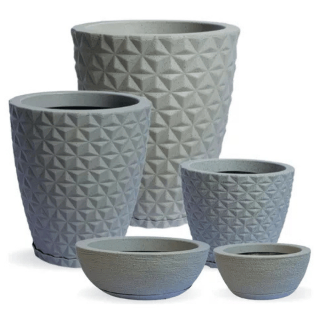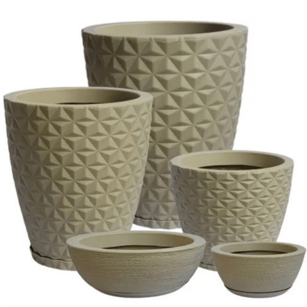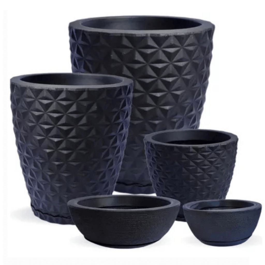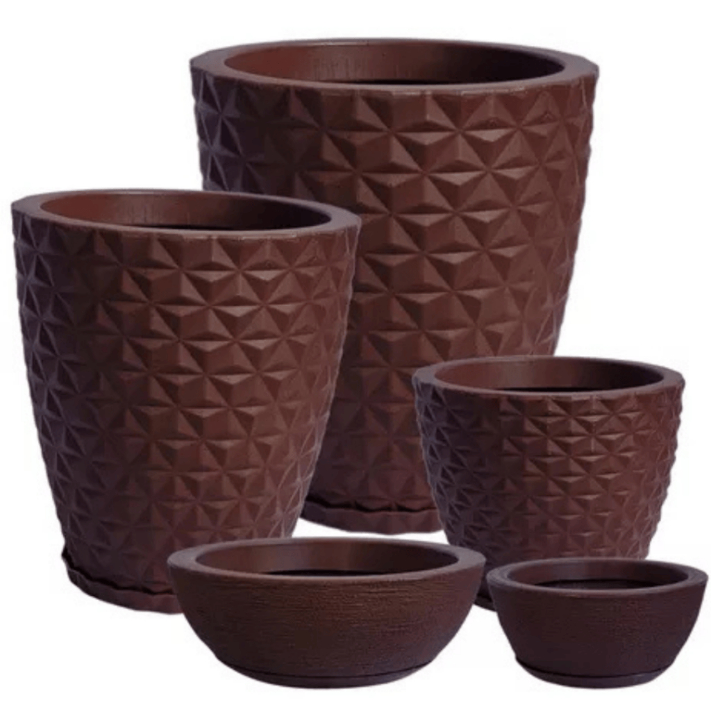 Jogo 5 Vasos Polietileno Decorações Premium Para Plantas, Casa, Jardim, Sala, Interior e Exterior 3D Com Pratos
