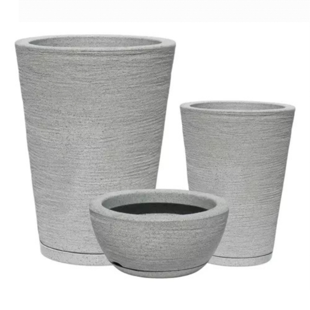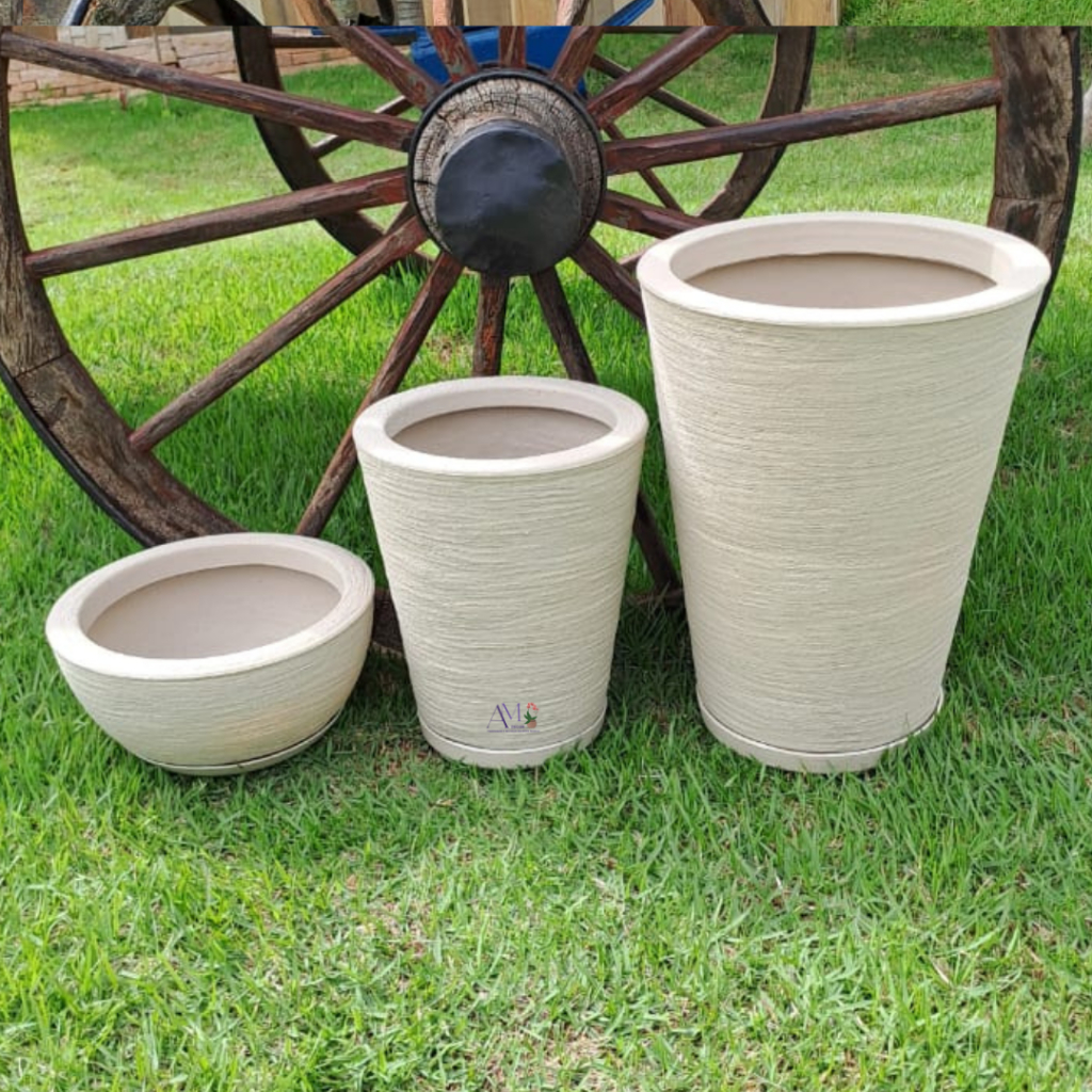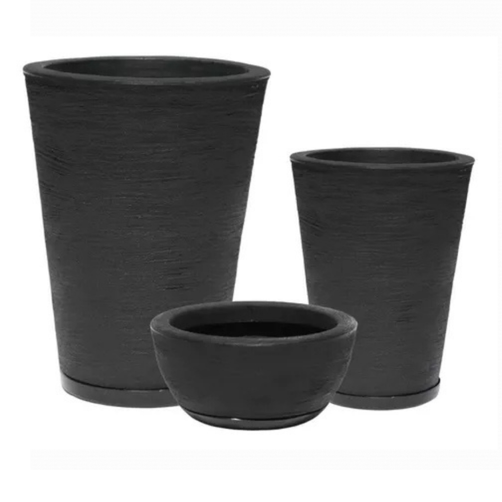 Kit 3 Vasos Decorativos Modernos Para Plantas Casa Cone E Bacia N1 N2 N3 Com Pratos
