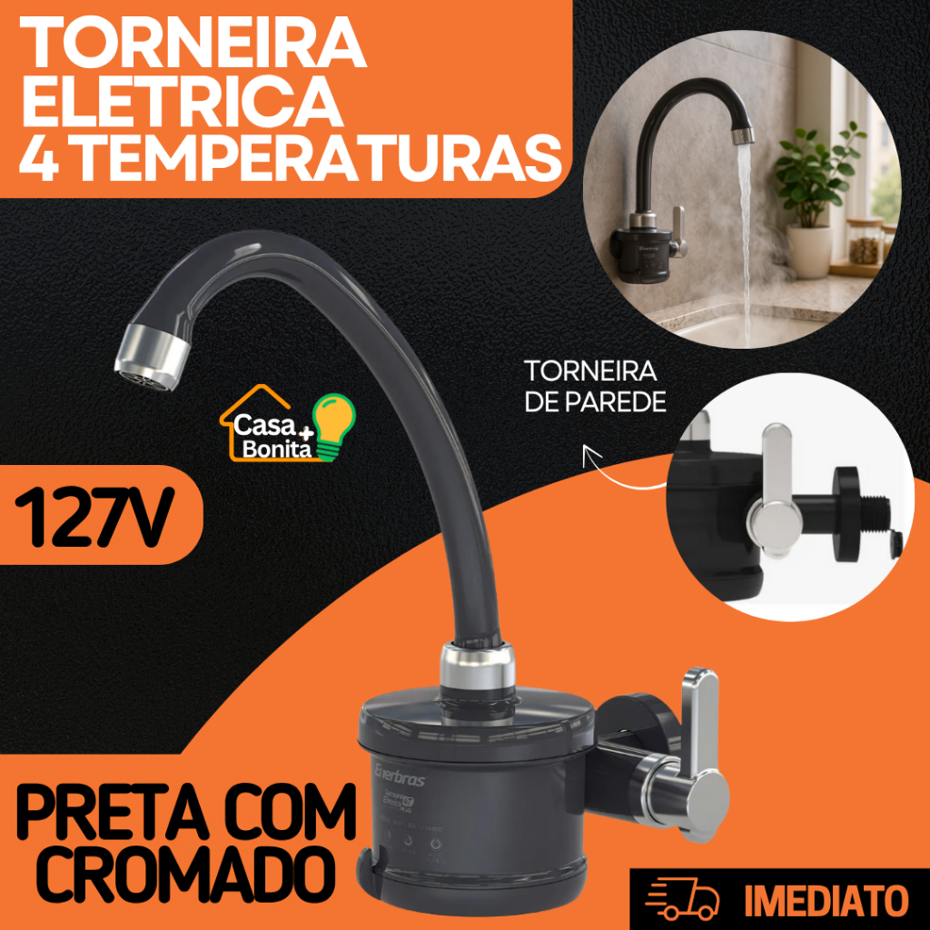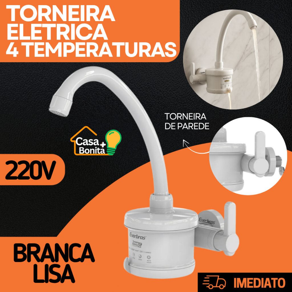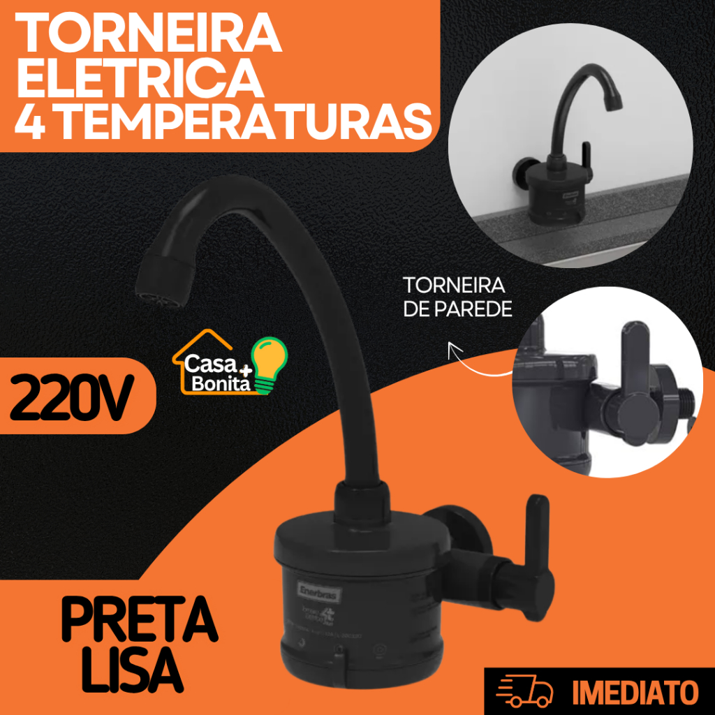 Torneira Elétrica parede Para 4T Plus Branca Preta 127V 220V 4800W 5500W Enerbras