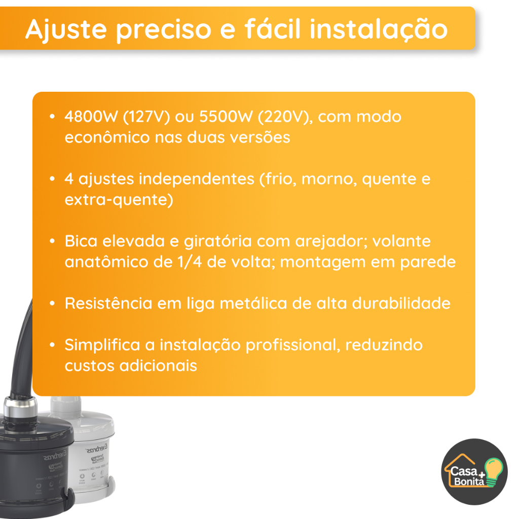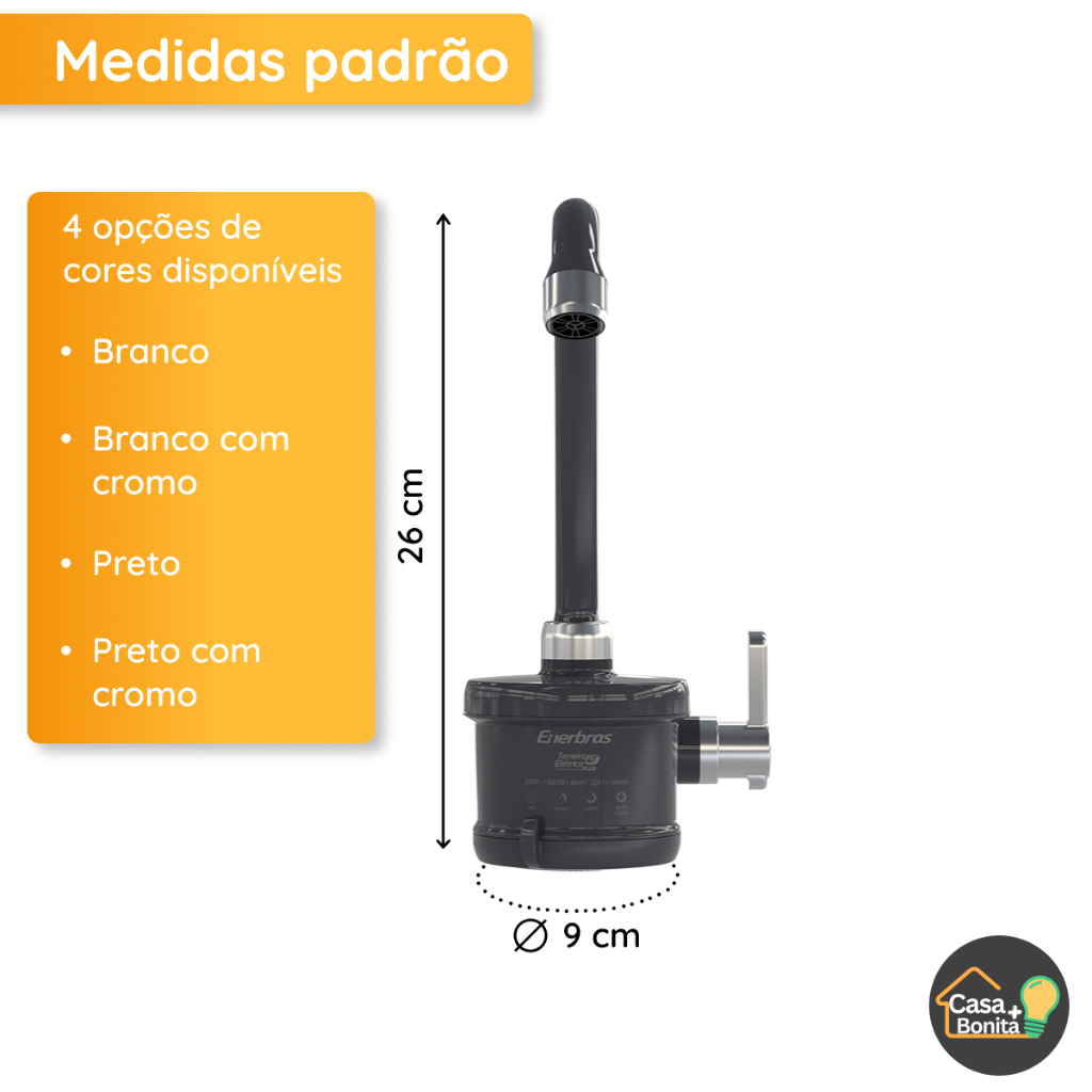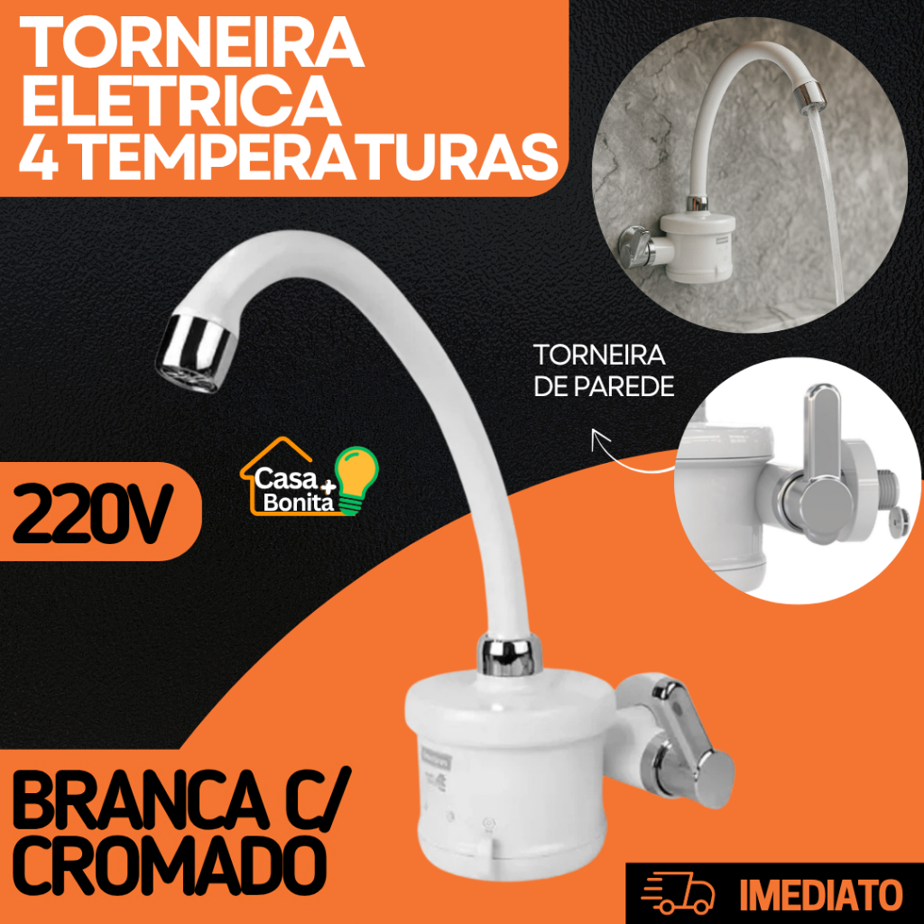 Torneira Elétrica parede Para 4T Plus Branca Preta 127V 220V 4800W 5500W Enerbras
