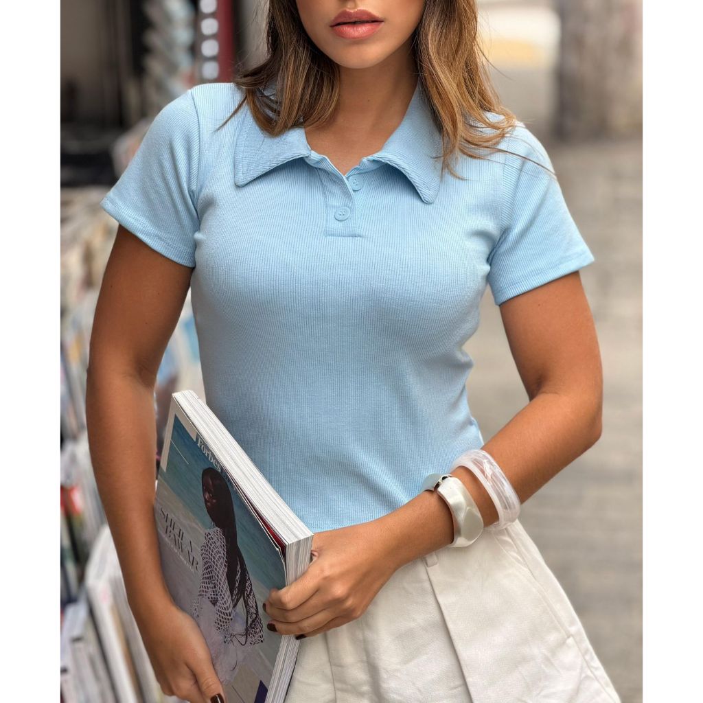 Blusinha Feminina Gola Polo Ribana Premium