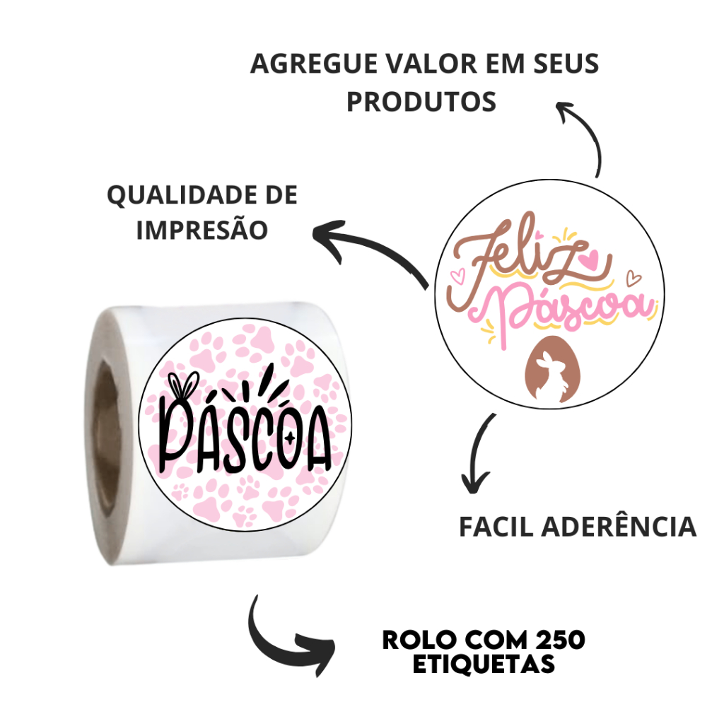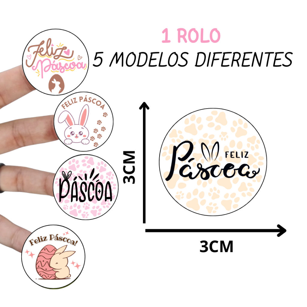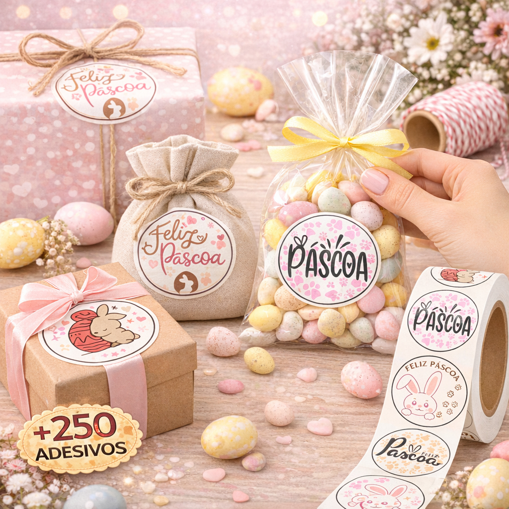 250 Adesivos Fofos | Modelo Feliz Páscoa | Papelaria Kawaii | 3cm