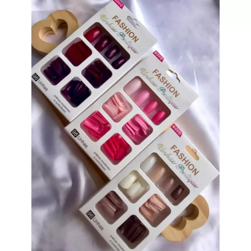 Conjunto de unhas de 96 peças vem em diversos designs e cores elegantes, adequados para todos os estilos e ocasiões.