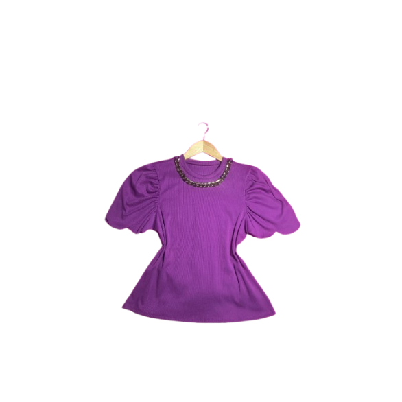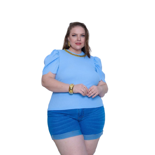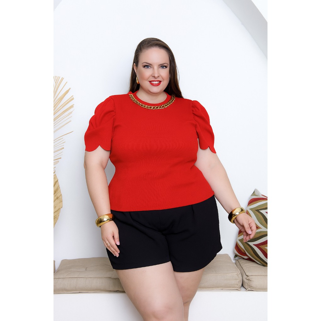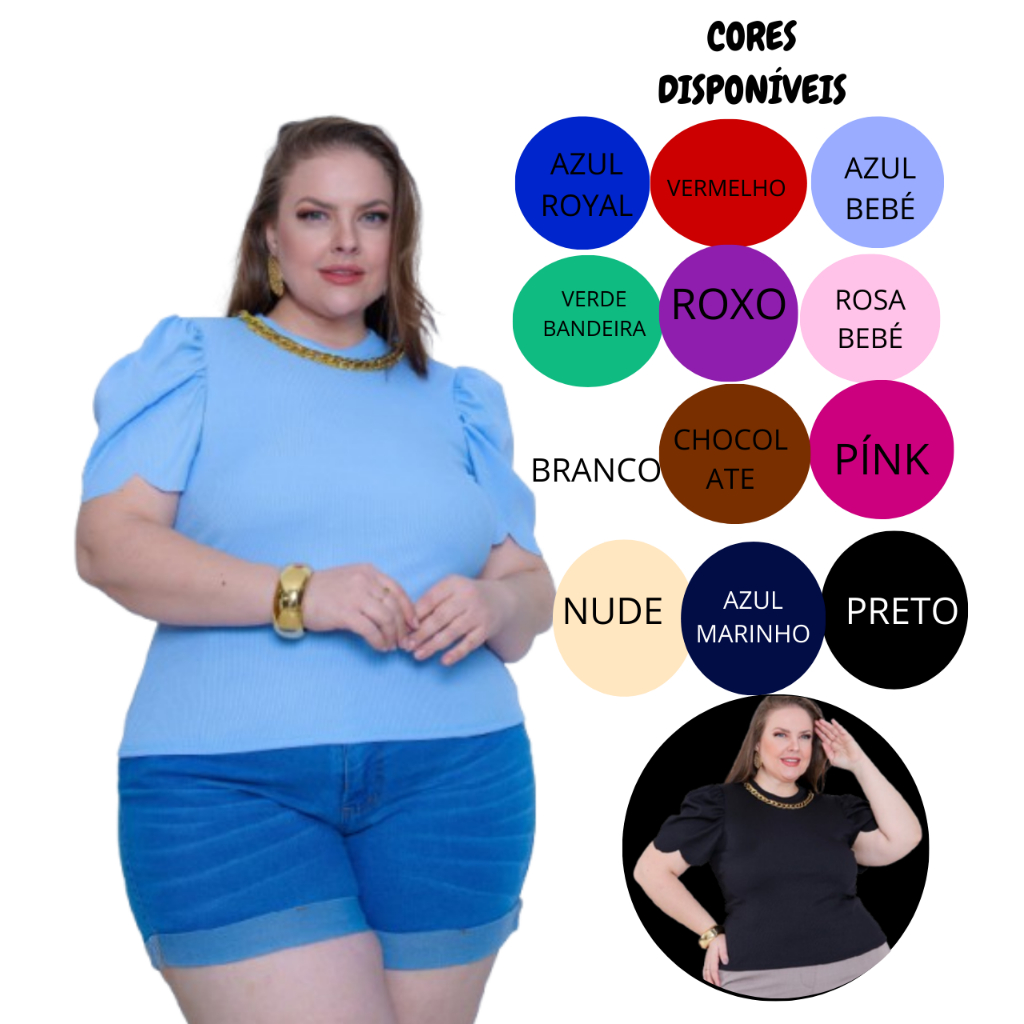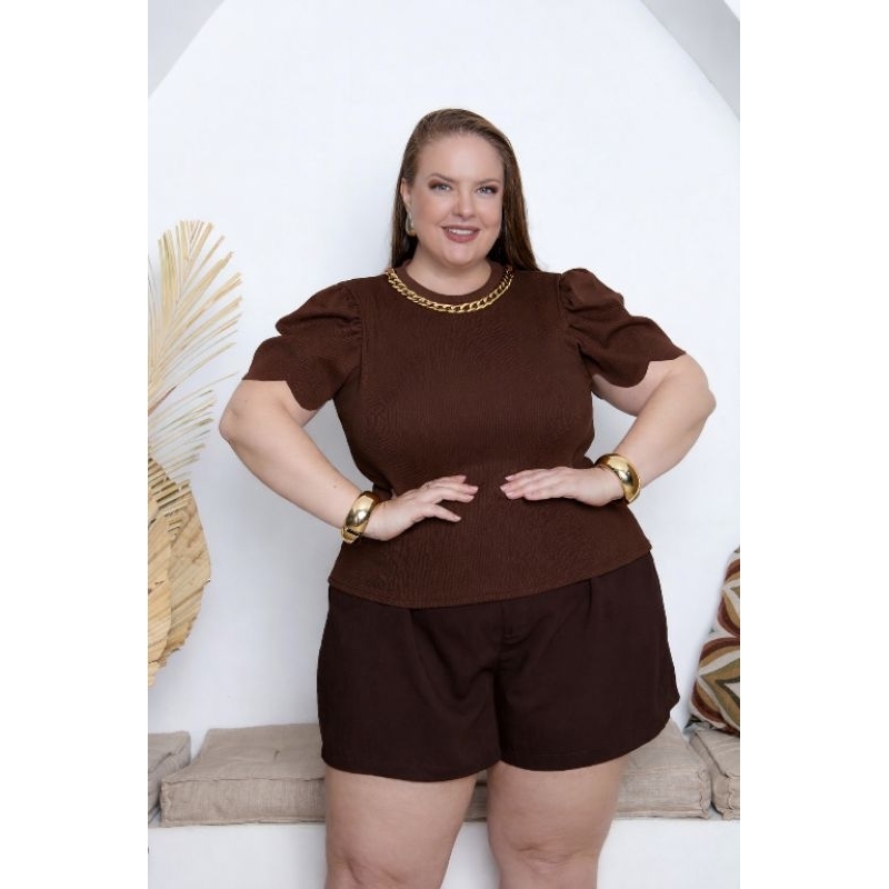 blusa feminina estilosa com corrente manga princesa plus zise elegancia semi cropped