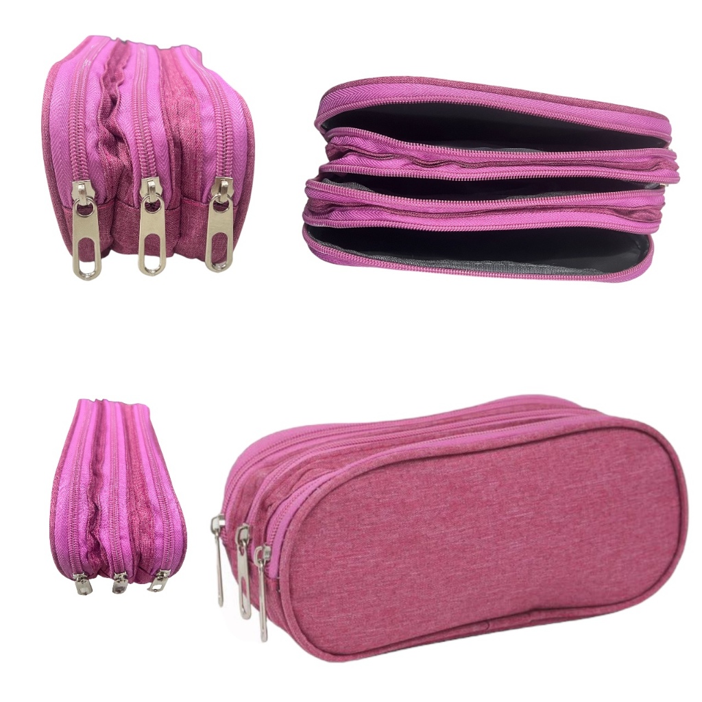 Estojo 3 Ziper Triplo Escolar Masculino Feminino Grande Com 6 Cores Para Escolher