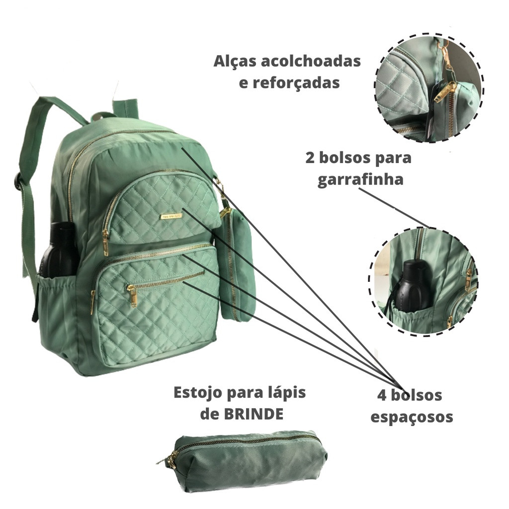 MOCHILA FEMENINA Grande CAPACIDADE e Varios DIVISORIOS e ESTOJO de Lapis