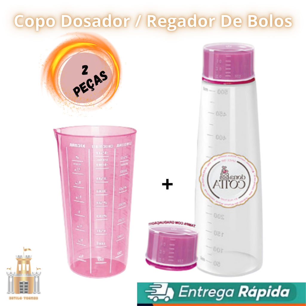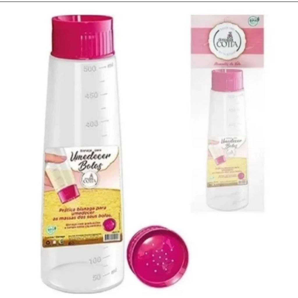 Regador Bisnaga De Umedecer massas Para Bolo 500ml Rosa + Copo Medidor 570ml Rosa