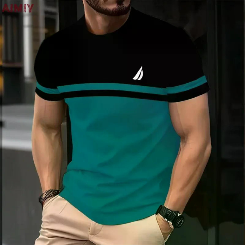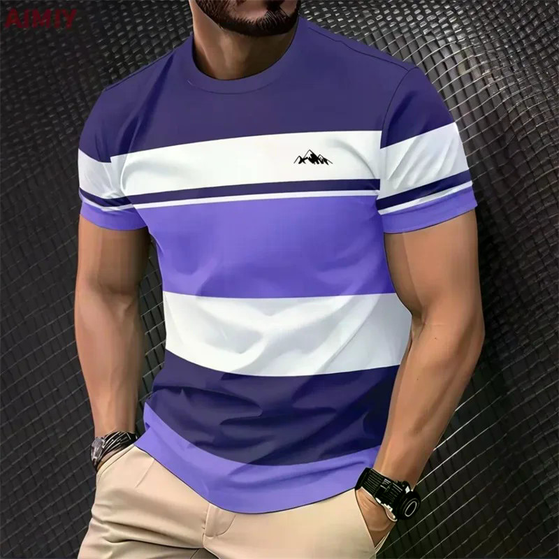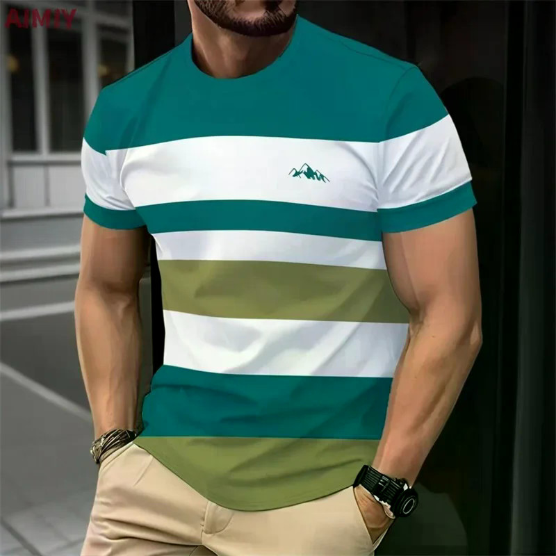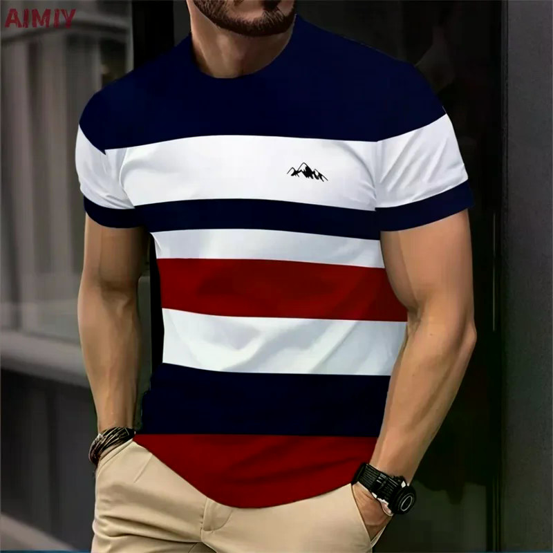 Verão Manga Curta Jogo Cor T Camisa Para Homens Moda Em Torno Do Pescoço Oversized Listrado Camisetas Roupas Masculinas