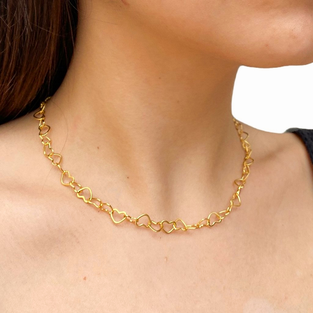 Kit Colar + Pulseira Feminino Corações Vazado Luxo Banhado em Ouro 18k Atacado e Revenda
