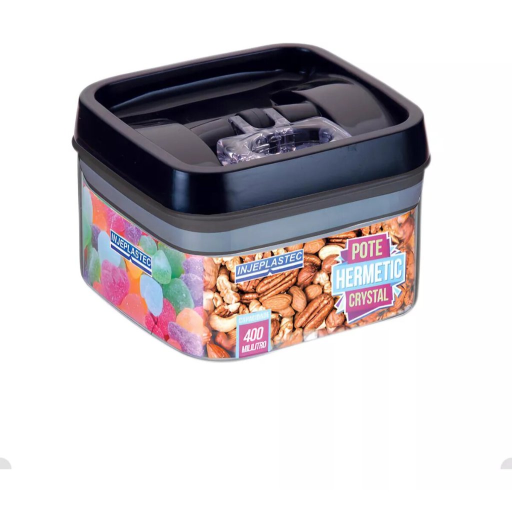 Pote Hermético Acrílico Quadrado Pequeno Com Trava 400ML