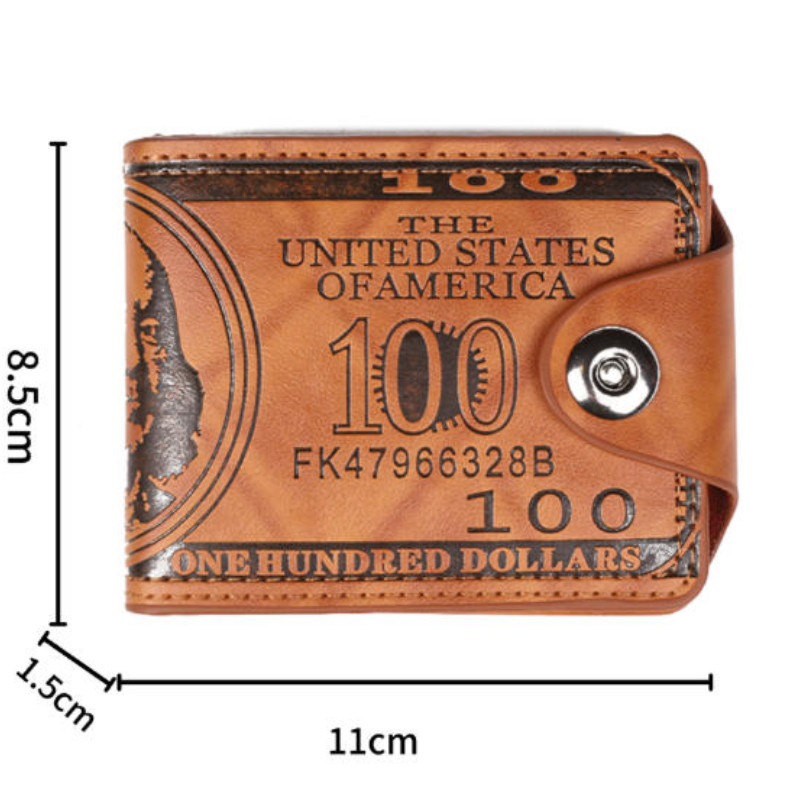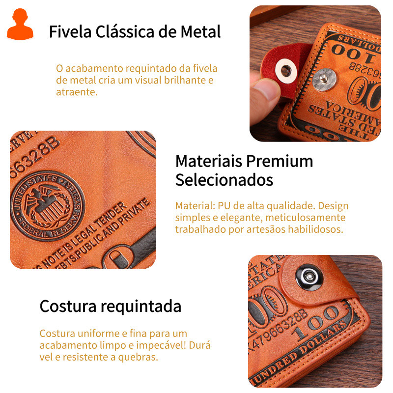 Carteira masculina com fivela de US$ 100, carteira masculina de couro com zíper e porta-cartões, porta-moedas