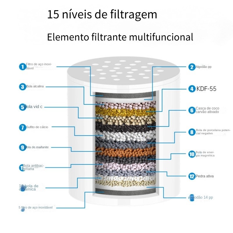 Conjunto de filtro de chuveiro de 15 camadas, purificador de água para banheira, purificador de chuveiro