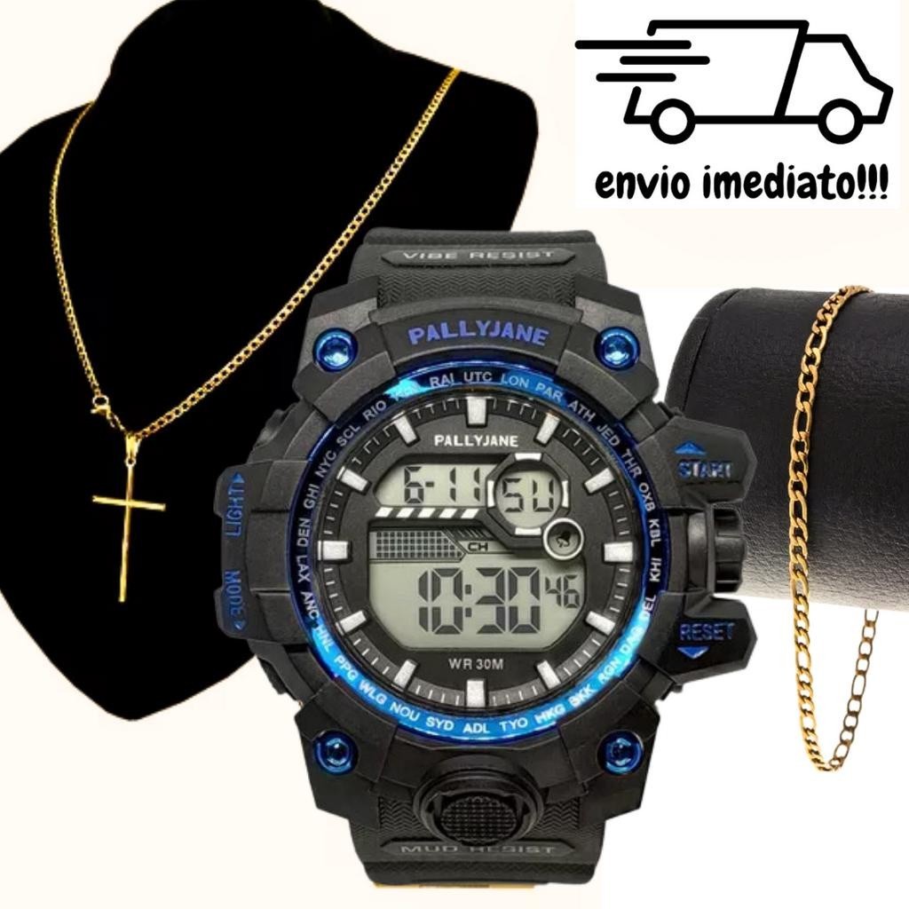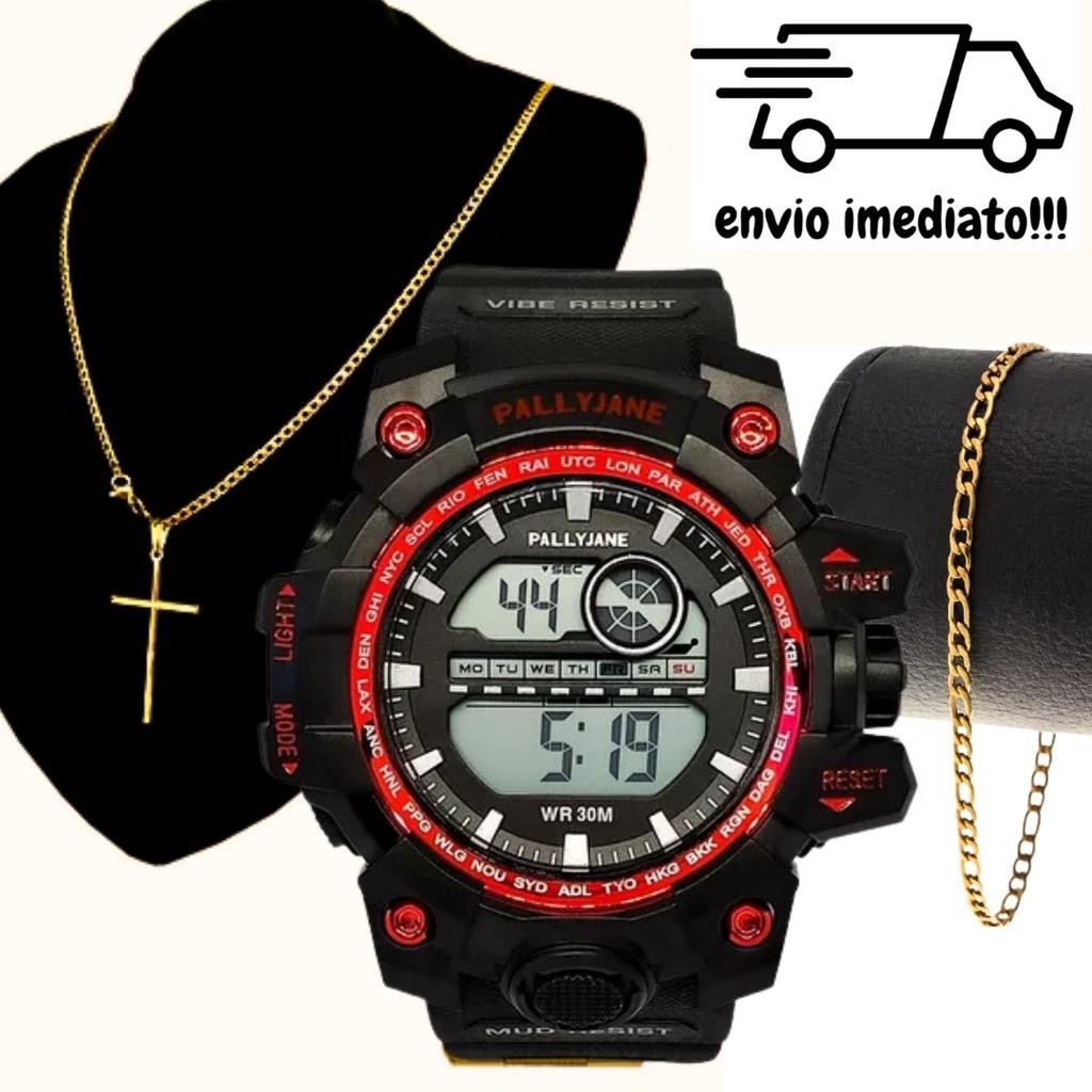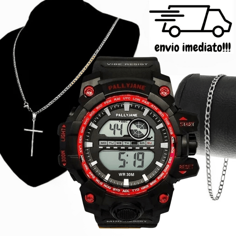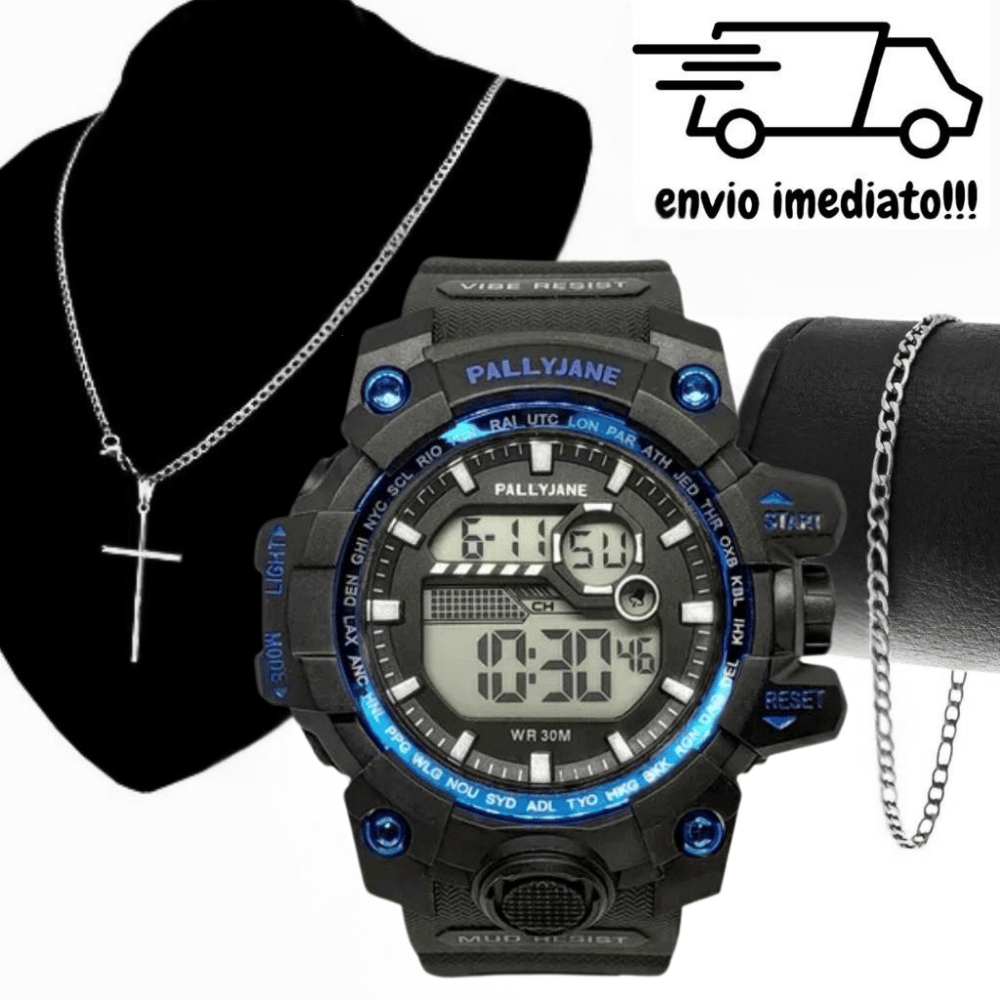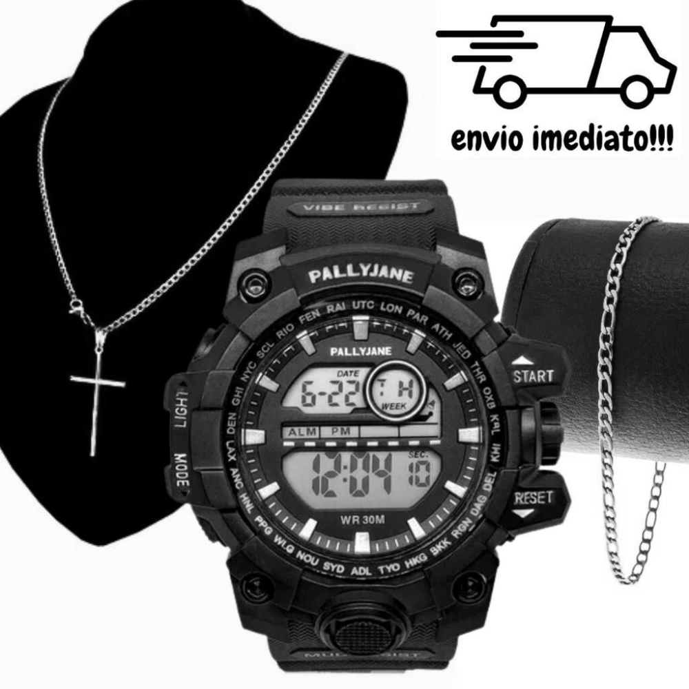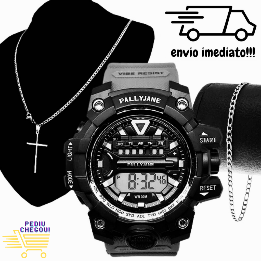 Kit Relógio Masculino Digital Esportivo + Corrente Cruz e Pulseira – Presente Masculino Luxo