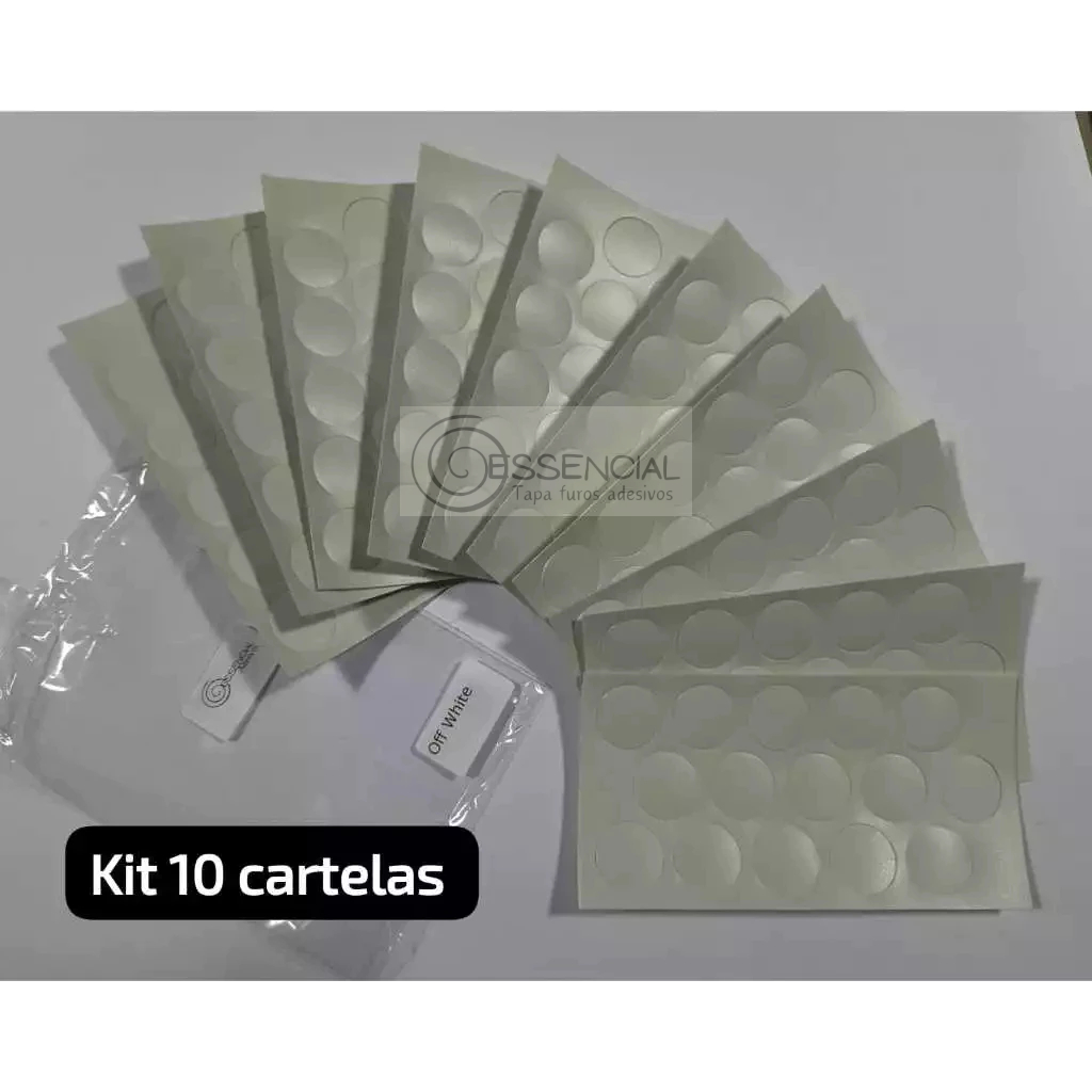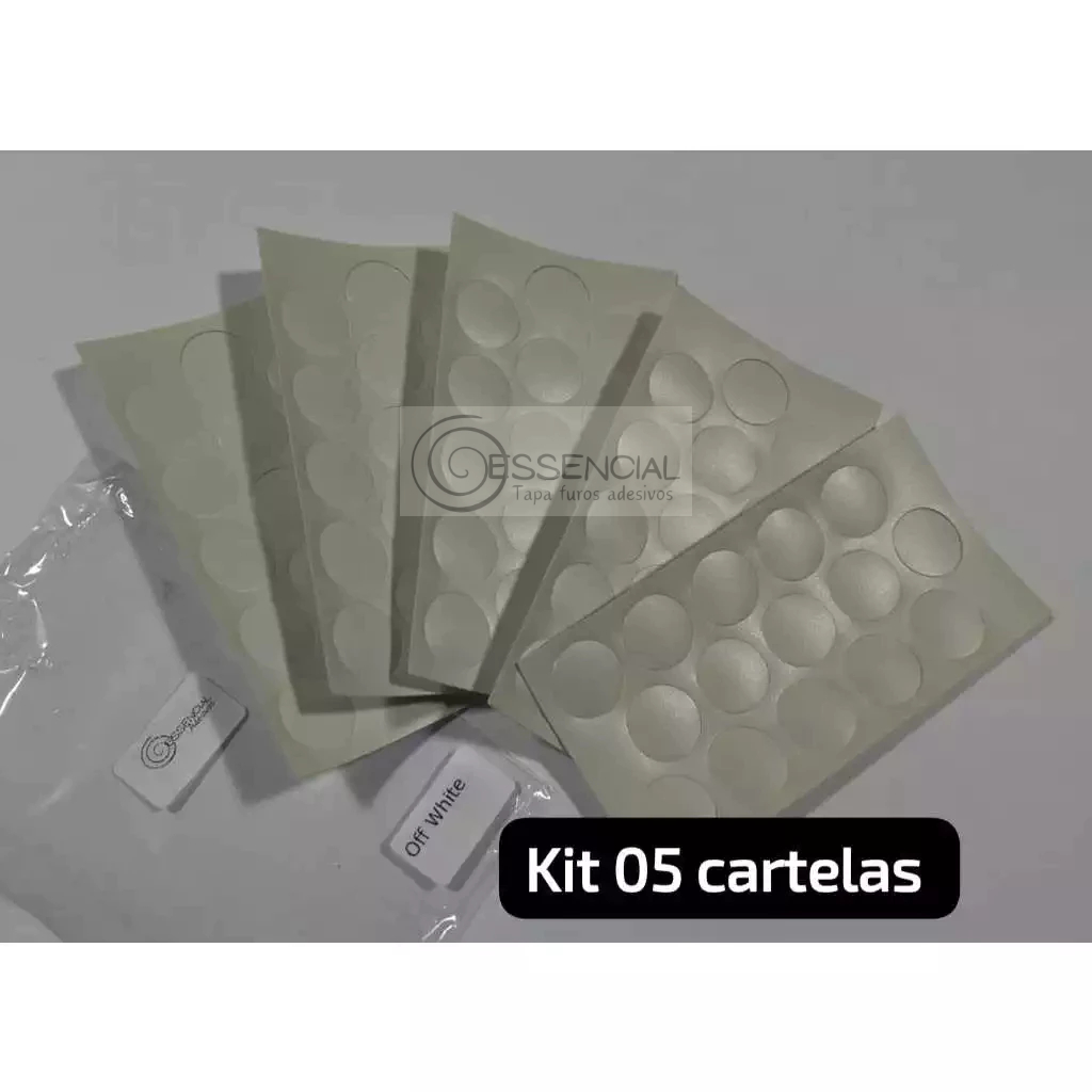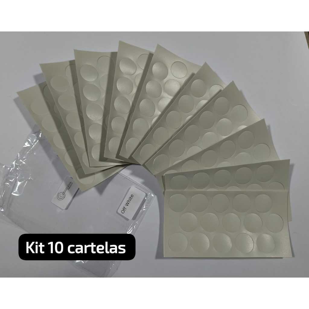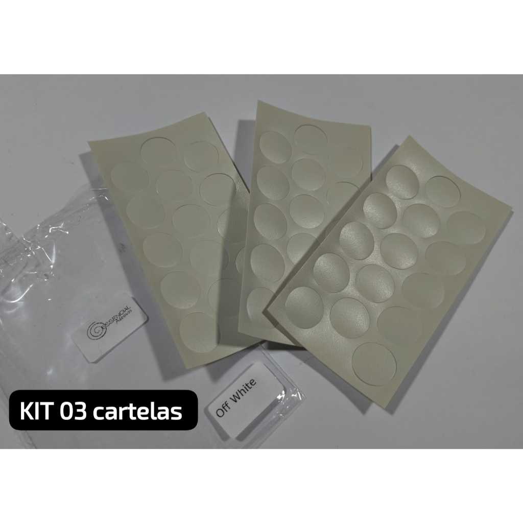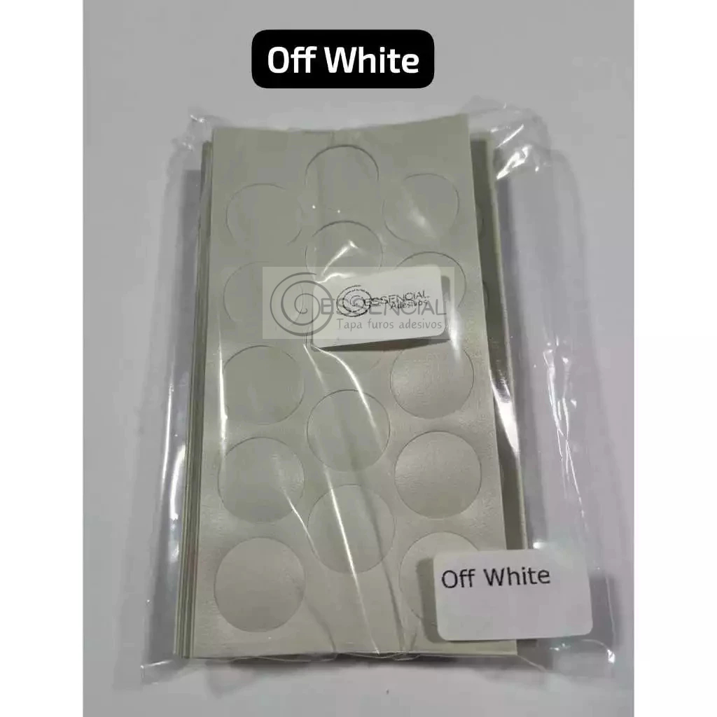 Tapa Furos Adesivos OFF WHITE 19mm. Kit c/ 03, 05 ou 10 cartelas (15 unidades p/ cart.) p/ móveis.