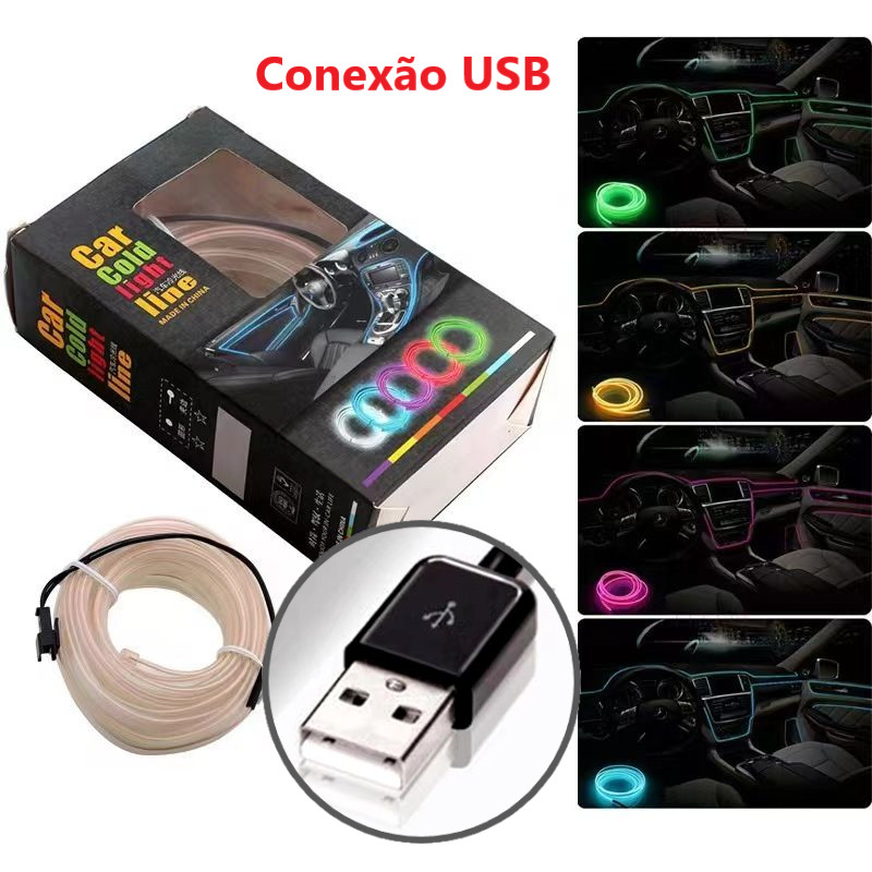 Fita de Led Neon Painel Interior Carro Decoração Automotiva Tunning 12V 3 / 5 metros Top Luxo