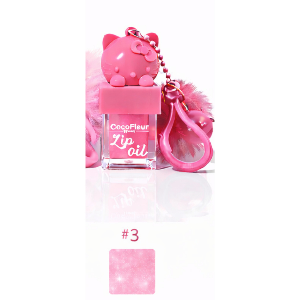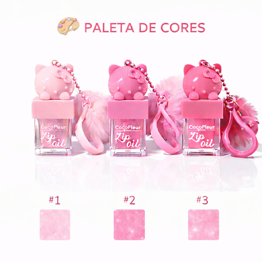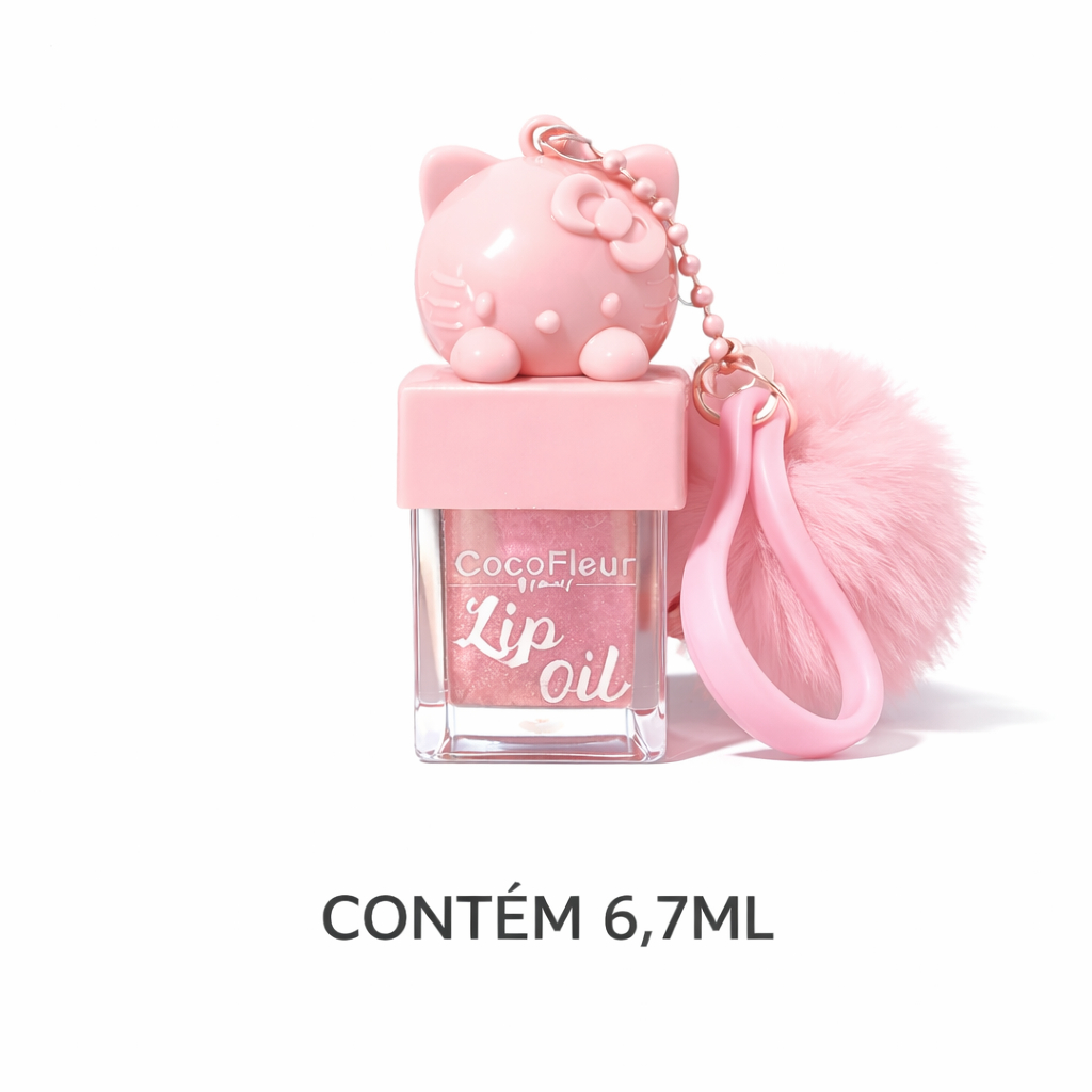CocoFleur Óleo Labial com Pingente Ursinho e Pompom 6,7ml Hidratante Brilho Gloss Chaveiro Fofo Feminino